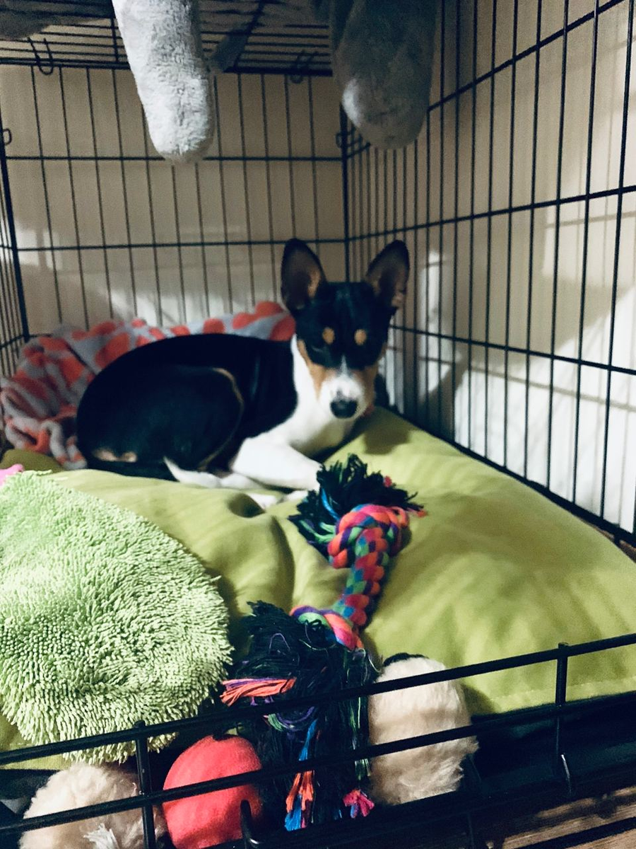 Мы купили клетку для Дерри сразу как только решили, что заберем собаку домой. Понять, что клетка нужна, нам помогли статьи по организации места для щенка и советы заводчика. Чтобы вы понимали, я сталкиваюсь (до сих пор) со многими людьми, которые считают, что мы те еще изверги и запираем несчастную псину в клетке, а она там как изнеможённый каторжник лежит на холодном полу и грызет прутья с глазами полными собачьих слез. На деле же, клетка Дерри это мини комната. Там она чувствует себя под защитой. Однако для того, чтобы ваша пушистая там почувствовала себя дома, а не в тюрьме, ее нужно к клетке приучить. Тогда, собака не будет воспринимать клетку как ограничение ее свободы, а наоборот поймет, что клетка это хорошо и будет спокойно там пребывать, когда вы уходите из дома. Большой плюс клетки в том, что ваша квартира и вещи в ней останутся целыми и на своих местах. А собака (если у нее нет проблем с психикой) будет в клетке спокойненько спать, дожидаясь вас. Еще один плюс приучения со