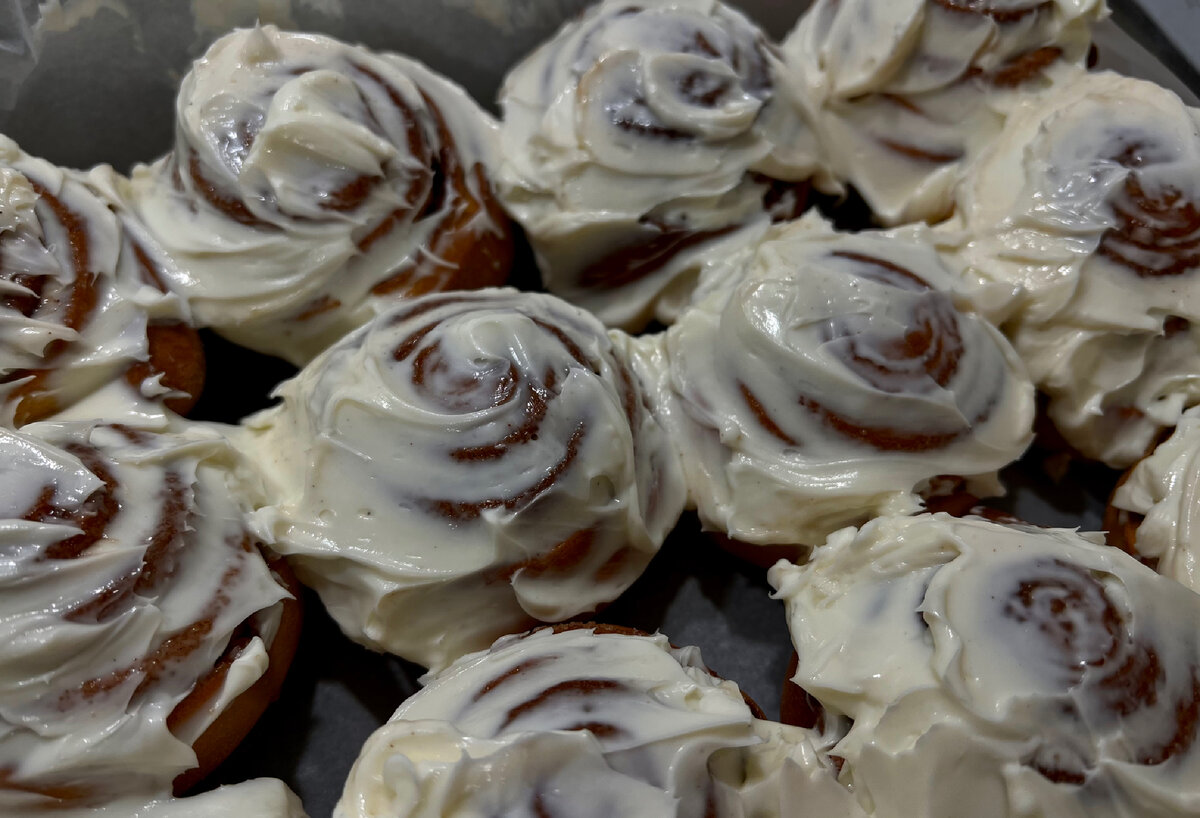 Булочки синнабон - это нежнейшая выпечка с корицей, залитая сливочным кремом. Готовить их совсем не сложно. Давайте пробовать))) Ингредиенты (тесто): Ингредиенты (начинка): Ингредиенты (глазурь): Приготовление: 1. Делаем опару. В теплое молоко добавляем 1 чайную ложку сахара и дрожжи. Накрываем пленкой и даем постоять минут 5-10 для активации дрожжей 2. А пока взобьем яйца с сахаром, ванильным сахаром и солью до пышности 3. Добавляем растопленное сливочное масло (не горячее) и дрожжи с молоком 4. Далее добавляем просеянную муку и замешиваем тесто. Лучше в миксере с насадкой весло, но можно и руками. (Вручную дольше) Накрываем тесто пищевой пленкой и ставим подниматься в теплое место на 1,5-2 часа, оно поднимется где то в 2-3 раза.