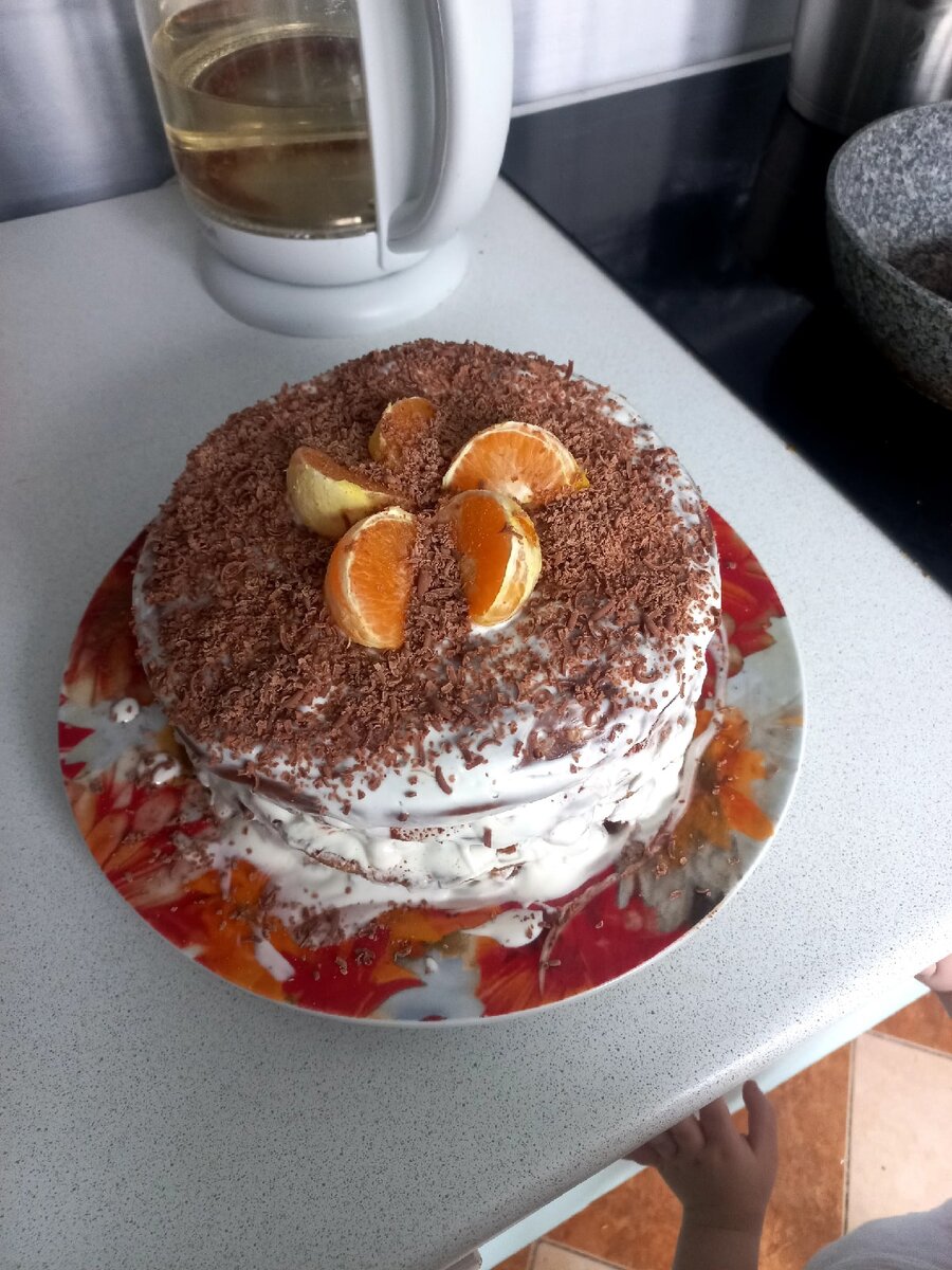 На завтрак для своей семьи я решила испечь вкусненький тортик, который я делала пока училась в университете, цены на ингредиенты почти не выросли в цене! Лучше этого рецепта торта вы нигде больше не найдете.😌 Для торта на понадобится: Готовка: Чтобы приготовить корж необходимо замешать все ингредиенты и печь на сковородке около 8 минут. Для приготовления крема нам понадобится: Все ингредиенты тщательно перемешиваем и даем им настоятся. После того как наш крем настоялся мы промазываем наши готовые коржи кремом, начинку на каждый слой чередуем. Если захотите что-то добавить, то можно взять любую плитку шоколада и пару бананов. После даем нашему готовому торту постоять в холодильнике с час два и можно приступать к трапезе.😋 Спасибо за то, что дочитали до конца, надеюсь пицца понравится Вам и Вашей семье! 🤩