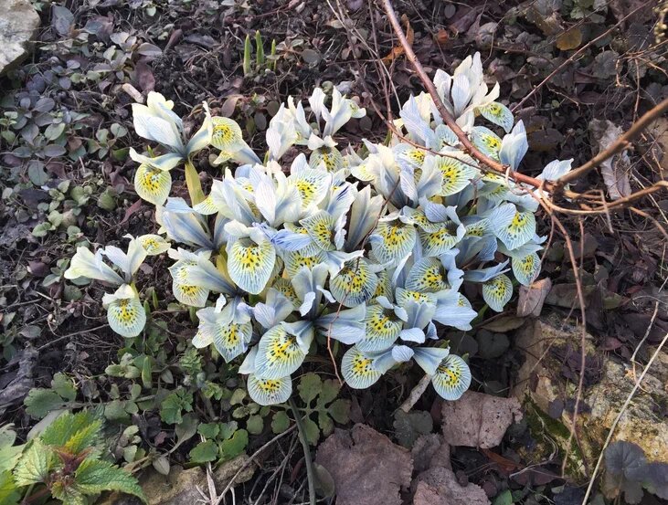 Подснежниками зачастую называют не только сами подснежники (галантусы), но и другие первоцветы, появляющиеся ранней весной. Среди них есть растения с непростым именем — иридодиктиумы. Внешне они очень похожи на маленькие ирисы, но иридодиктиумы отличаются тем, что вместо подземного видоизмененного побега — корневища, у них развивается клубнелуковица. Она образована одним листом, и каждый год взамен развивается следующий такой видоизмененный лист. Мягкие ткани старого листа разрушаются, и на его месте остается сеточка из сосудов, поэтому иридодиктиумы называют также сетчатыми ирисами. Ранней весной на поверхности почвы образуется длинный цветонос, до 10 см, окруженный сложенными в трубочку основаниями листьев. Цветок некрупный, до 5 см, разнообразной окраски. После отцветания листья начинают расти, а в их основании часто образуется коробочка с семенами. Когда листья отмирают, начинается период покоя, он приходится на лето. Вид иридодиктиума, давший название всей этой группе луковичных и
