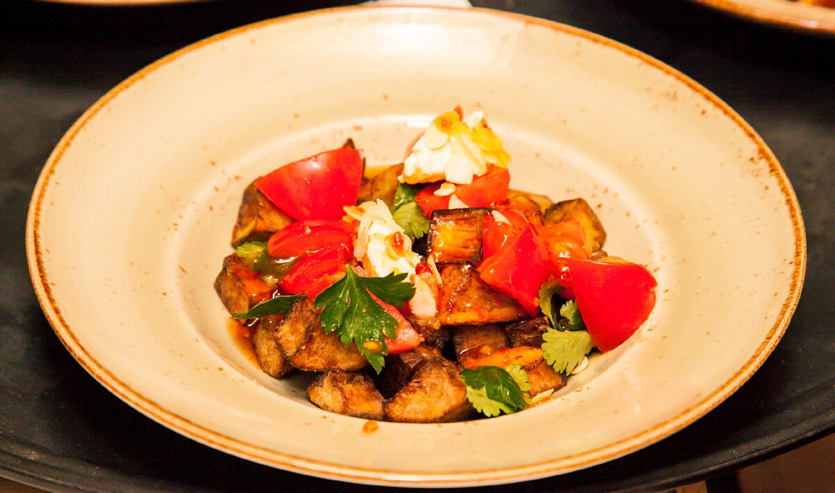 О полезных свойствах баклажана многим известно.Я люблю готовить его без лишней суеты.Возьмем два баклажана.Очистим кожу и нарезаем небольшими кубиками.Оставим на 10 мин в подсоленной воде чтоб горечь ушла.Дальше на разогретую сковородку наливаем масло растительное, и добавим наши баклажанчики только на горячее маслом сковородку.Как они станут румяными вынимаем.Баклажаны должны быть в состоянии альденте.Соль по вкусу.Кладем в глубокую тарелку.Добавим помидоров несколько долек.Пару ложек сливочного сыра.У меня не было кунжута потому сверху посыпал петрушкой.Можно еще подавать это блюдо с кисло сладким соусом.Для этого просто готовим сироп из воды и меда .На оставшийся в сковородке масло добавим меда столовой ложки и не много воды.Смешиваем это все на среднем огне мин 10 и добавим соевого соуса.Смешиваем пока все не загустеет .Дальше можно смело полить этим соусом баклажанчики.Приятного аппетита..Друзья подписывайтесь на новый мой канал Бон Суар