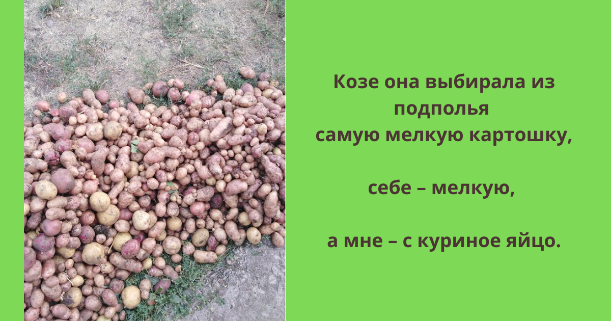 Козе она выбирала из подполья самую мелкую картошку, себе – мелкую, а мне – с куриное яйцо.