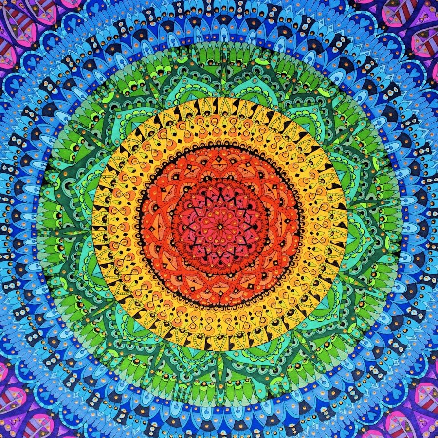 - теперь наблюдаем за тем, каких оттенков видно больше всего на картины мандалы, как они перетекают один в другой, как взаимодействуют между собой;
