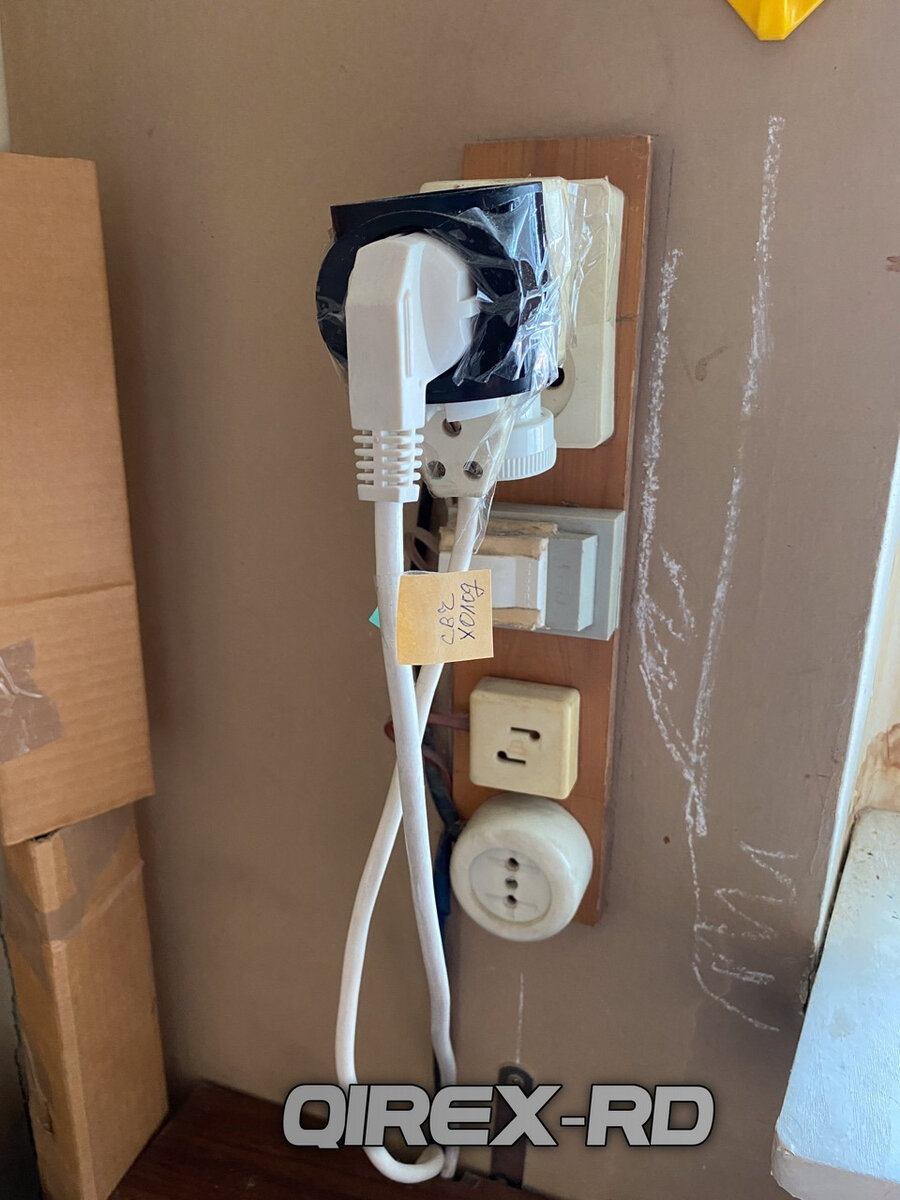 Спустился к нему. Первое что предстало перед глазами — сгоревшая розетка и отгоревший от вилки провод китайского удлинителя 0.75мм, через который питалась стиральная машина. Фото нет потому как все воняло и мы это стремились выкинуть как можно скорей, плюс еще ночь, в квартире трое детей, все спят, надо что-то придумать чтобы хотя бы свет был.