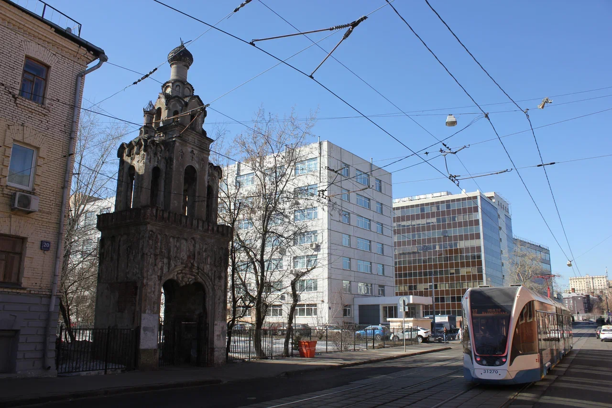 Которые, конечно же, никакие не ворота, а звонница старообрядческой церкви 1915 года постройки, оставшаяся без своего храма. Что печально, но уникальности не убавляет. Расположена эта прелестная реликвия ушедших дней, как следует из названия статьи, на улице Бауманская у дома №20. Посмотреть на неё довольно просто - нужно выйти из трамвая 37, 45 или 50 на одной из близлежащих остановок, либо просто пройтись пять минут пешком от одноименной станции метро. Церковь была построена церковь во имя Святой великомученицы Екатерины. Откуда она здесь взялась? Ну, стоит напомнить, что к северо-востоку от центра Москвы наблюдалось повышенная концентрация старообрядческих общин. Да, сейчас большинство ассоциирует древлеправославную церковь с Рогожской слободой, которая от центра, соответственно, на юго-востоке, но поверьте - в районе "Бауманской" тоже есть на что посмотреть. Чего стоят построенные Бондаренко невероятно оригинальные церкви поморской общины в Токмаковом переулке (о ней я писал здесь)