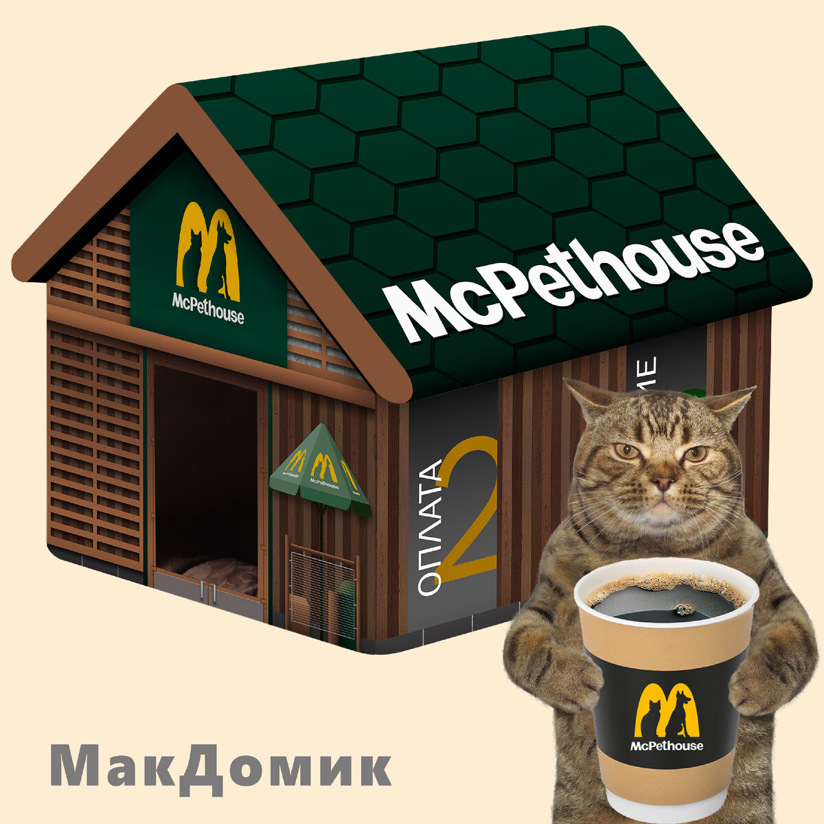 Мы решили разработать серию домиков для животных в стиле брендов, ушедших из России (или приостановивших свою деятельность). Первым в линейке стал выполненный из поролона домик для кошек и собак МакДомик McPethouse, полностью повторяющий внешний вид временно закрывшегося в России «Макдональдса». «Место, где всегда можно отдохнуть. Релакс и тепло для питомца — круглосуточно 24/7.» Следующими в этой серии выйдут СтарБудка и АдиДом. В настоящее время их макеты дорабатываются. АдиДом — мягкий удобный домик в виде кроссовка, а СтарБудка — уличный практичный вариант дома для собак. Напомним, что домашние питомцы также пострадали от введения западных санкций. 3 марта Международная федерация кошек (FIFE) запретила российским кошкам и котам принимать участие в своих выставках за пределами страны. С аналогичным заявлением выступила и Международная кинологическая федерация (FCI). #макдоналдс #mcdonalds #макдом #эксклюзив #новинка #зоотовары #домдляпитомца #кот #собака