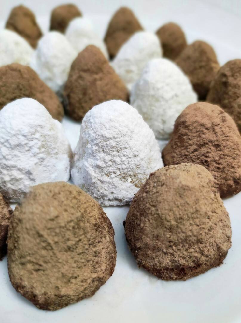 Очень хрупкое и вкусное печенье 🍪 вкус этого печенья помнится из детства, поскольку в советское время эта выпечка была очень популярна 😋. ВКУСНО. ПРОСТО. ЛЕГКО ❤️ #выпечка #печенье Ингредиенты: муки, яичных желтка, маргарина 82.5%, сахара, цедра 1 лимона, Для посыпки, (с горкой) какао-порошка, сахарной пудры Способ приготовления: Яйца сварить (10 мин. после закипания), почистить, нам нужны только желтки, их растереть вилкой в мелкую крошку. Маргарин комнатной температуры (мягкий) растереть с сахаром, добавить желтки, цедру лимона и все тщательно размешать. Добавить просеянную муку и вымешать тесто ложкой, затем руками собрать тесто в шар. Скатать в руках шарики (весом не больше 15 г, так как при выпечке печенье увеличивается), затем придать печенью форму вытянутого конуса (d 1.5-2 см). Для того чтобы печенье зафиксировало свою форму, а при выпечке не сильно поплыло - поставить их на тарелке или подносе в морозильную камеру на 20-25 мин. Переложить конусы на противень, застеленной пер