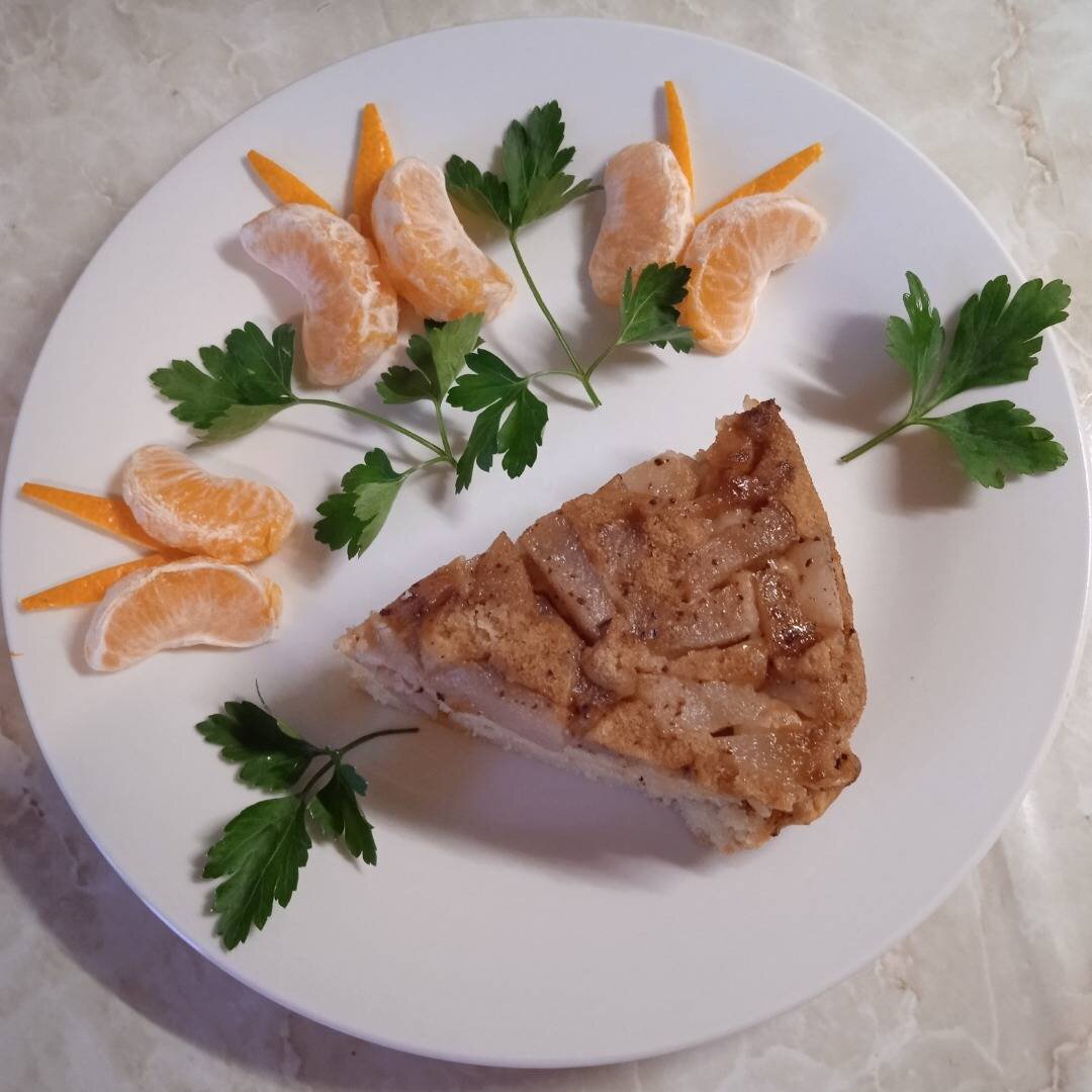 Пирог готовится очень просто, но получается очень вкусный, сочный, ароматный. #пост Ингредиенты: муки, растительного масла, воды, груши, сахара, соды, цедра 1 лимона, соль, по желанию корица Способ приготовления: Для теста: в миску влить воду, растительное масло, всыпать соль, сахар, перемешать. Всыпать просеянную муку, соду, добавить цедру лимона, замесить тесто, по консистенции оно должно быть, как густая сметана. Груши почистить, удалить сердцевину, нарезать средним кусочком, положить в форму, застеленную пергаментом, залить тестом. Выпекать при t 180, 30-35 минут. После приготовления, накрыть тарелкой, перевернуть, снять пергамент. Когда пирог немного остынет, можно посыпать сахарной пудрой.