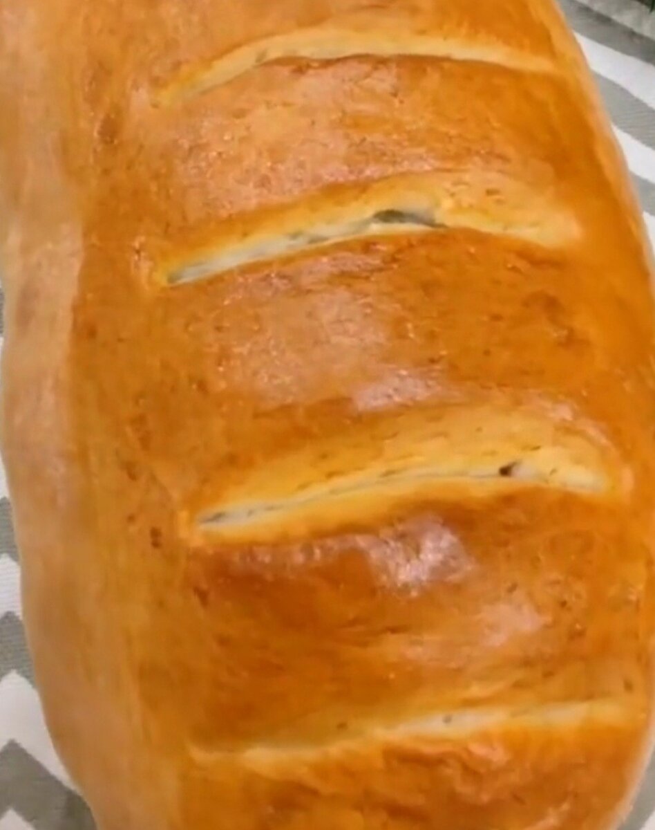 Нам понадобится: Теплая водица-210гр Дрожжи-1ч л Сахар-1ч л Масло растительное-2ст л Соль-1ч л Мука-350гр Готовим: В тёплую водицу добавляем дрожжи, сахар, венчиком хорошо взболтали, добавили растительное масло, следом закинули муку и соль. Заболтали тесто так, чтобы оно не прилипало к рукам. После этого кладем тесто в теплое местечко, накрываем полотенцем. Примерно на часок. Формируем красивый, вкусный батон Кладём в форму, даём еще постоять 15 мин. Ножницами делаем надрезы, смазываем взбитым яйцом и отправляем в духовку позагорать на 25 мин при 180гр.