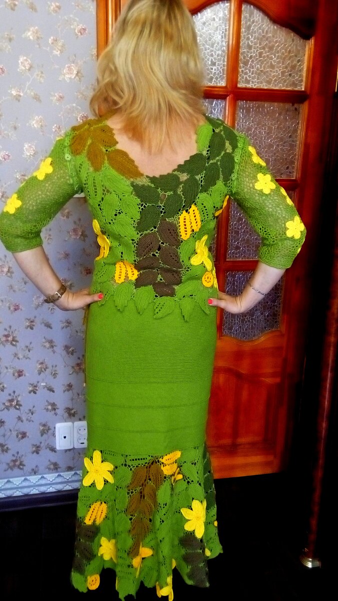 Вязание - увлекательное и полезное занятие - самое популярное рукоделие в мире. Умея вязать крючком, можно создать много красивых изящных изделий. Главная цель каждой мастерицы - сделать этот мир, а точнее свой гардероб, более ярким и красивым. Прежде чем связать костюм, Вам нужно определится с цветом и формой элементов, из которых он будет состоять. Свой костюм я вязала, используя схемы модели Натальи Лункиной из журнала мод. Для своего костюма я купила семёновскую пряжу 100% хлопок ( 100 гр - 400 м). Основной цвет изделия - это фисташковый. На костюм 48 - 50 размер ушло 800 грамм ( 8 мотков) фисташкового цвета. Желтого, оранжевого и коричневого - ушло чуть меньше 2 мотков каждого цвета. Болотный и горчичный цвет - по одному мотку. Сначала вяжем необходимое количество элементов и делаем выкройку. Очень удобно собирать элементы на листе поролона. Купите поролон 50 x 50 толщиной 10 см. Для выкройки удобно использовать подложку под ламинат. Прикрепляете выкройку к поролону и затем