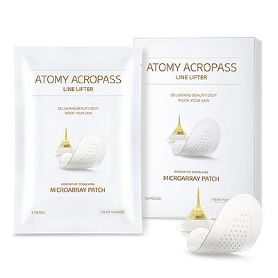 Атоми Акропасс — патчи для разглаживания морщин. Лифтинг эффект. Количество: 1 сет — 15 упаковок (в упаковке 5 патчей) Срок использования: 24 месяца. После вскрытия использовать продукт сразу. Изготовитель: Kolmar BNH Корея. Решает проблемы кожи посредством экстракта природных соевых бобов, аскорбины глюкозида (витамин С), ацетил октапептида-3 (регулятор влажности, разглаживает морщины), гиалуроновая кислота активно наполняет кожу влагой. Вещества способствуют моментальному разглаживанию морщин. Каждый патч представляет собой гтдрогелевую пластину на поверхности которой расположено 80 микро игл. Диаметр микро иглы - 40 микрон. Это примерно в 3 раза тоньше человеческого волоса. Такая игла с легкостью преодолевает верхний слой кожи и питает её глубинно. Процедура использования патчей Атоми - это полноценная альтернатива процедуре мезотерапия, где уколы производятся железными иглами. Иглы патчей Атоми на 100% состоят из гиалуроновой кислоты и хорошо растворяются в коже. В каждой