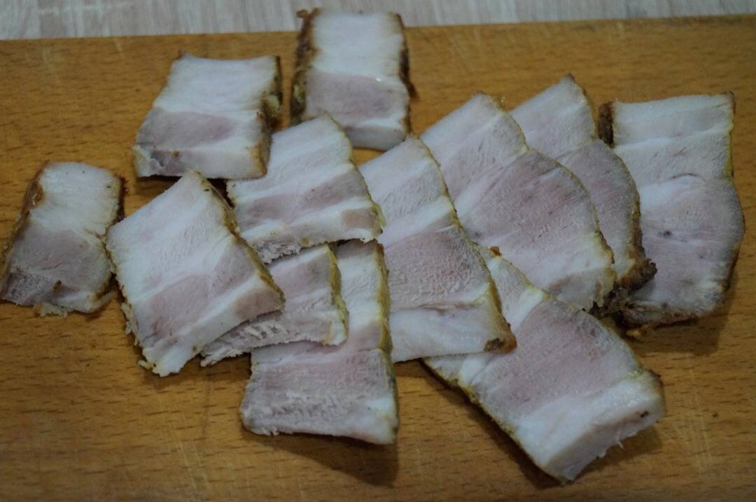Ингредиенты: грудинка свиная постная, соль, перец, горчица, специи Способ приготовления: Грудинку посолите, наперчите, смажьте горчицей, выложите в форму мультипекаря, форму поставьте в чашу мультипекаря, включите программу на 180 градусов, на 15 минут. По окончании времени программы, переверните грудинку на другую сторону, включите мультипекарь ещё на 15 минут. Когда мультипекарь выключится, оставьте его закрытым на 3 минуты, потом выньте чашу и выложите мясо на тарелку. Горячее мясо очень вкусно, но остывшее и полежавшее в холодильнике в фольге или контейнере с крышкой, мясо ещё вкуснее...