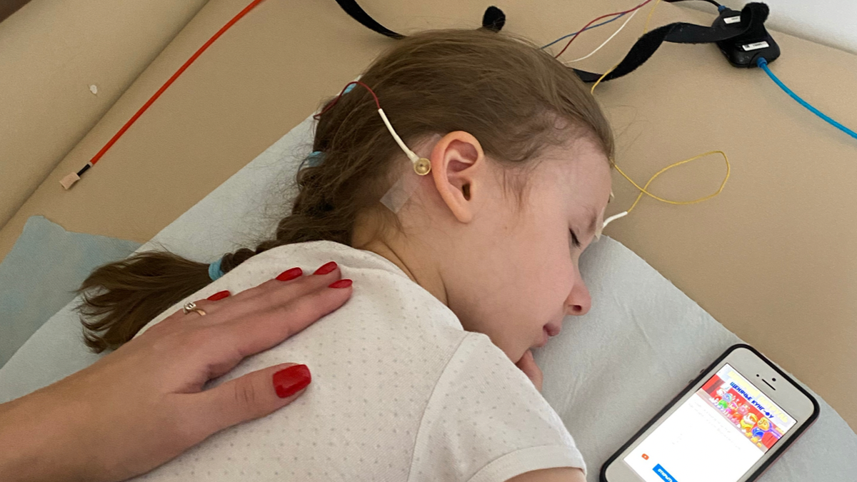 Чтобы провести такую процедуру, ребенок должен спать. И именно во сне, без движения и разговоров ребенка, проверяется слух. Это получается из-за прикрепленных проводочков, которые считывают активность реакции мозга на звук, подаваемый в наушники.