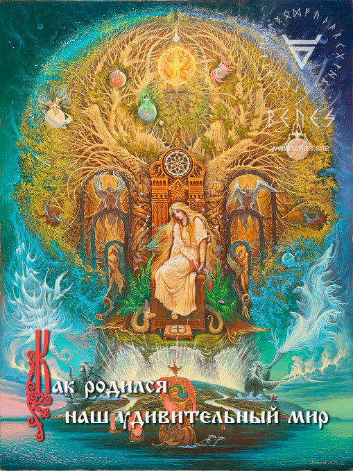Знал Сварог, что этот камешек ещё сослужит ему добрую службу! По веленью всесильного Рода, по хотенью творца Сварога были высечены на Алатырь- камне Законы, по которым жить следовало. Из-под камня Алатыря потекли плодородные реки, чтобы приносить урожай земле, здоровье и силу всему живущему. Потекли родники с водою живою и водой мёртвою. И будет заведовать этими родниками Макошь, богиня великая.