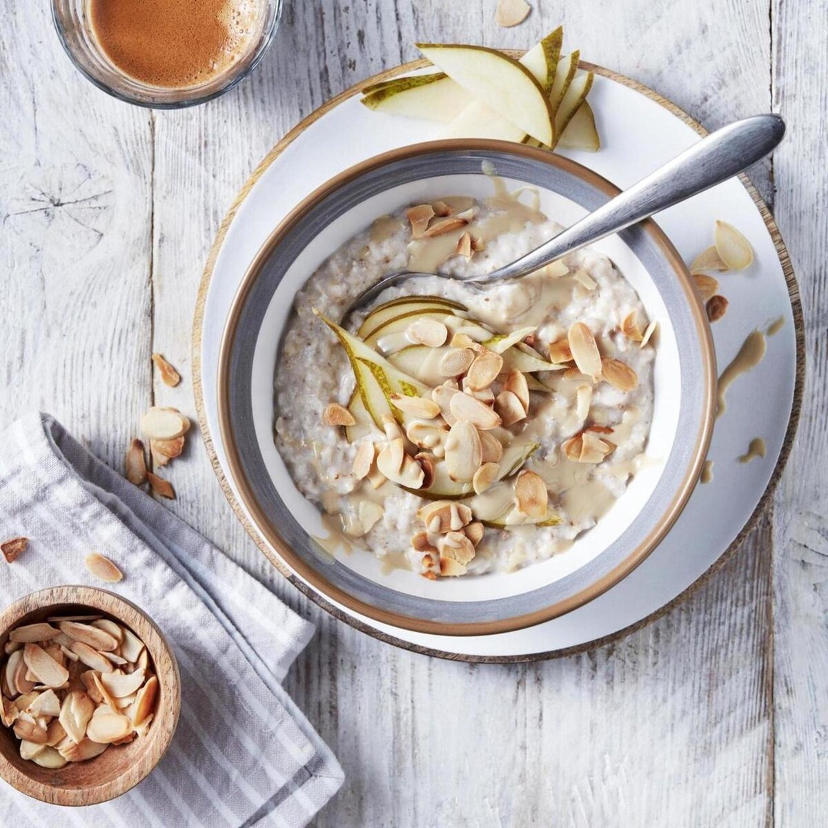 Овсянка — самое популярное блюдо на завтрак. По своим питательным свойствам и количеству полезных макро- и микроэлементов овсяная каша не уступает суперфудам. Кроме того, она отлично разгоняет метаболизм по утрам, выводит токсины и поднимает настроение. Если овсяная каша кажется вам скучной и достаточно пресной по вкусу, то скорее всего вы просто неправильно ее готовите. Показываем вам несколько интересных вариантов приготовления этой знаменитой каши, чтобы вы смогли по достоинству оценить ее вкус. Овсяная каша на воде с сыром Ингредиенты: Способ приготовления: 1. Овсяные хлопья из цельного зерна засыпьте в сотейник, залейте водой в пропорции 1:3, посолите и варите на медленном огне 20-25 минут. 2. Натрите на терке пармезан или любой другой твердый сыр. 3. За пару минут до готовности добавьте в кашу сливочное масло и сыр, перемешайте.Когда сыр расплавится, переложите кашу в тарелку и подавайте с Итальянскими хлебцами с семенами подсолнечника и морской солью. Мягкая овсянка с карамелиз