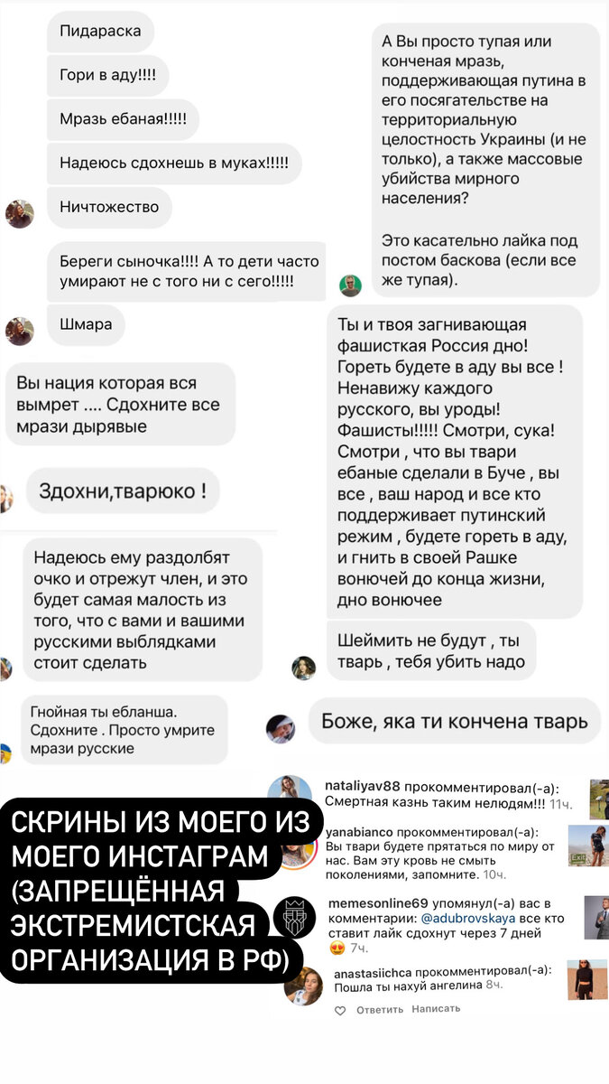 Я сейчас этим постом провела анализ с исторической, психологической, политической и бытовой точки зрения, по фактам, и привела примеры того как это уже было. Задача общества сделать выводы, а не сидеть и не долбиться в директ со своими угрозами. Худой мир, лучше доброй ссоры.