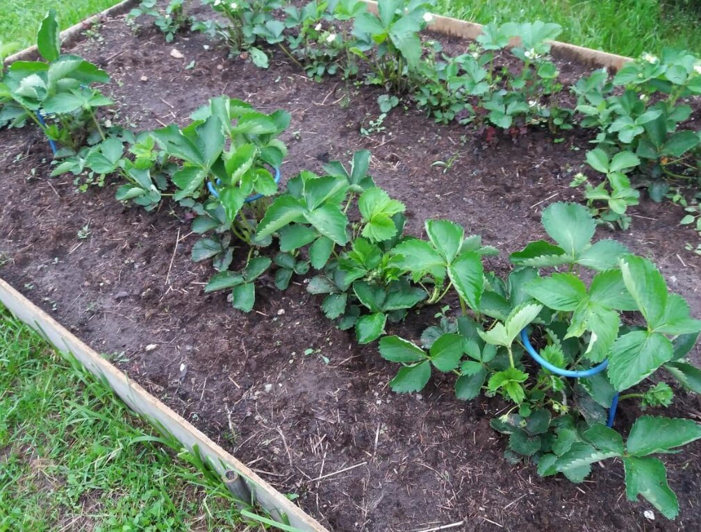 Ни для кого не секрет, что, когда ягоды клубники наливаются, да еще их на одном цветоносе много, они моментально ложатся на землю. Как избежать этого? Конечно, продаются специальные подставки, но они недешевые, да и диаметр у них стандартный, а кусты-то «нестандартные». Давайте сделаем такие подставки своими руками – они надежны, и диаметр можно варьировать под конкретный куст. Кустики начинают подрастать, зацветать и плодоносить, и мы начинаем постепенно помогать им не падать на землю. Что представляют собой эти подставки? Сделаны они из электрического провода в изоляции диаметром 6 мм. Вот так выглядят подставки до сгибания – длина каждого «колена» 35 см. Когда снимаем их с кустов, разгибаем, поэтому они и хранятся в таком виде. Как только видим, что пора поддерживать кусты, сгибаем их в зависимости от необходимого диаметра и подставляем. В процессе развития куста диаметр поддерживающего круга можно увеличивать. Кустики надежно поддержаны! Вот такой незамысловатый, экономичный, а