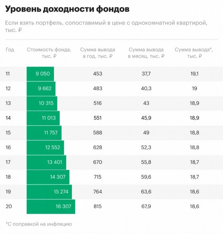 Как эффективнее накопить на старость: сдавая квартиру или покупая фонды?🤔 🔺Получение ренты за ипотечную квартиру — инвестиции в однушку с двузначной доходностью На этом можно было бы и закрыть вопрос, ведь дешевле и удобнее копить с помощью фондов, то есть стратегия вырисовывается следующая: собираем капитал в ценных бумагах, чтобы не тратиться на дорогие займы. А собрав нужную сумму, покупаем жилье и сдаем его в аренду. Однако существуют некоторые нюансы. На 1 января 2022 года ипотечная ставка на вторичное жилье составляла 9%, средняя ставка аренды квартиры — 5,5% годовых, а среднегодовой рост цены 1 кв. м за десять лет — 4,5%. Получается, что совокупная доходность жилья перебивает банковскую ставку, а значит, с высокой вероятностью такой актив с годами отобьет затраты. Пример: берем в ипотеку готовую к проживанию квартиру площадью до 40 кв. м. Ее стоимость сейчас составляет около ₽3 млн — это средний для России показатель. При минимальном взносе в ₽300 тыс. кредит составит ₽2,7
