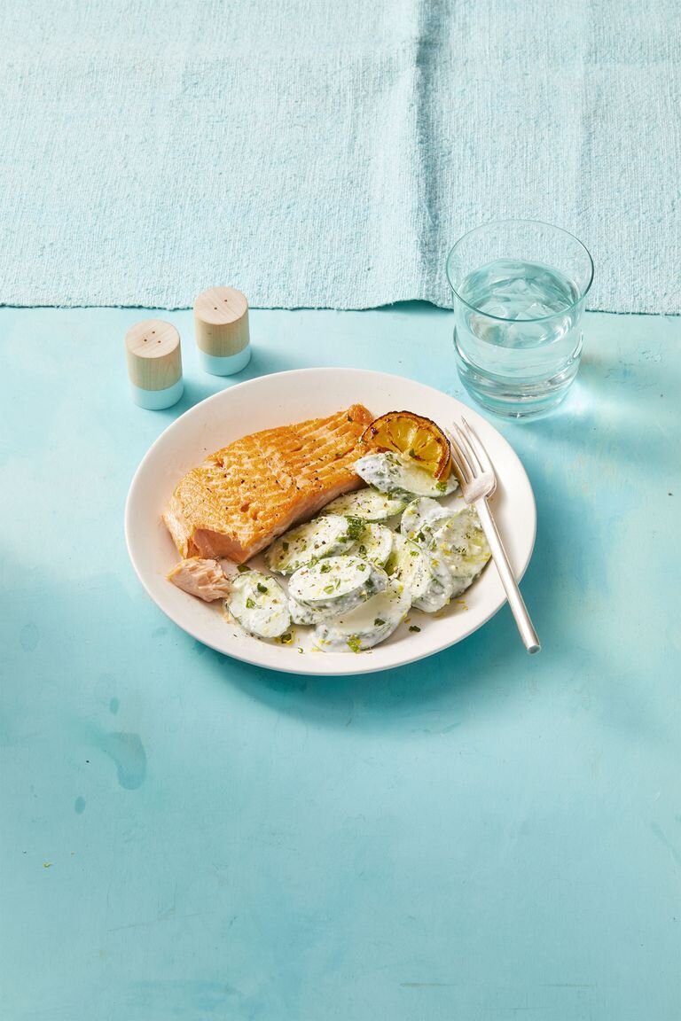 Можно приготовить учеличенную порцию сливочно - взбитой феты, чтобы подавать ее на тосты или в качестве соуса как другое блюдо. СОСТАВ 1 ст. л. оливкового масла 2 лимона 1 кг. филе лосося без кожи соль и перец 500 гр. огурцов, нарезанные с уклоном 100 гр. сыра фета 100 гр простой греческий йогурт 1/4 cтакана измельченных листья мяты Приготовление: НА ПОРЦИЮ: 280 калорий, 12,5 г жира (5 г насыщенных жиров), 34 г белка, 635 мг натрия, 9 г углеводов, 1 г клетчатки #лосось #сыр #фета #йогурт #огурцы