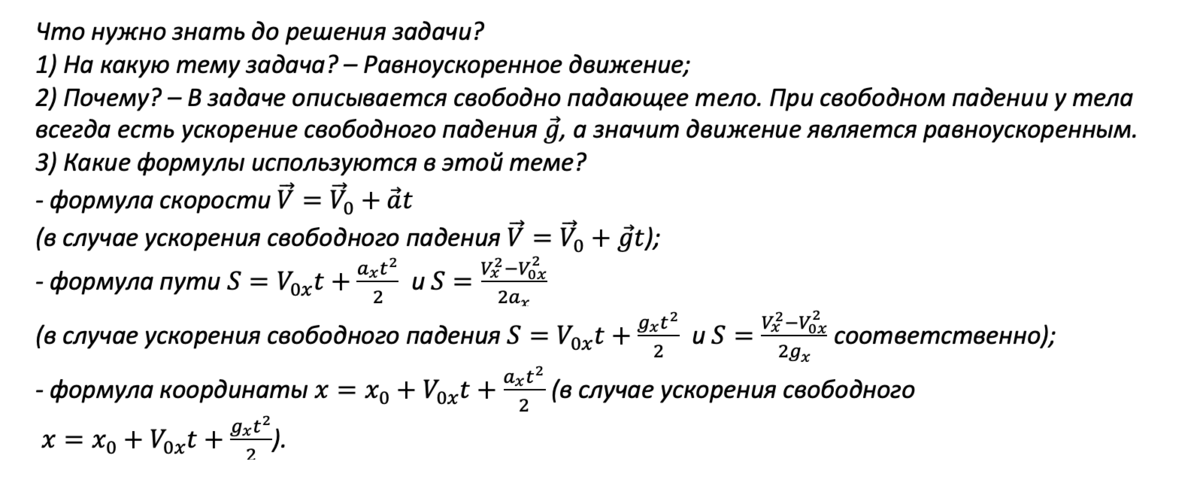 Решим очередную ЕГЭшную задачу. Свободно падающее тело прошло последние 30 м своего пути за время 0,5с. С какой высоты падало тело? Для начала - ответим на пару вопросов. Ну и, собственно, решение. Для большего понимания в скобках оставил подсказки или наводящие вопросы. Как-то так! Если есть вопросы - пиши в комментариях. Постараюсь ответить. А если понятно - переходи в к следующей задаче)