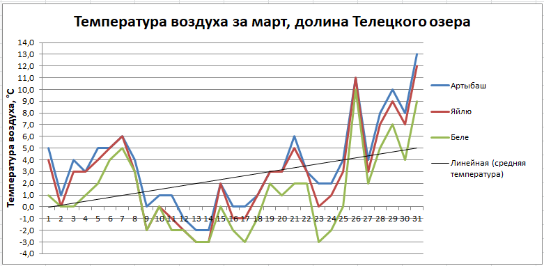 А. С. Пушкин Несмотря на обильный снегопад в начале марта, с третьей декады месяца средние температуры воздуха устремились к положительным значениям. Среднемесячная температура по с. Яйлю составила -3,0°С (на 0,3° теплее нормы). Казалось бы, что фенологическая весна началась с перехода суточных максимальных температур воздуха через 0°С в сторону увеличения еще 21 февраля. Однако похолодания в первой половине марта развеяли эти предположения. Устойчивый переход максимальных температур произошел 18.03.2022 г. – на 17 дней позже средней многолетней даты, приход фенологической весны подзадержался. Сумма осадков за март составила 39 мм (на 16 мм выше нормы). 24 марта отмечена первая встреча в этом году с медведицей в Прителецкой части (на 6 дней раньше средней многолетней даты), а 2 апреля вылет первых бабочек-крапивниц (на 25 дней позже средней даты), в воздухе нередко кружат мухи, копошатся муравьи. 11 марта отмечен первый клещ (на 2 дня раньше средней многолетней). 13 марта прошел первый