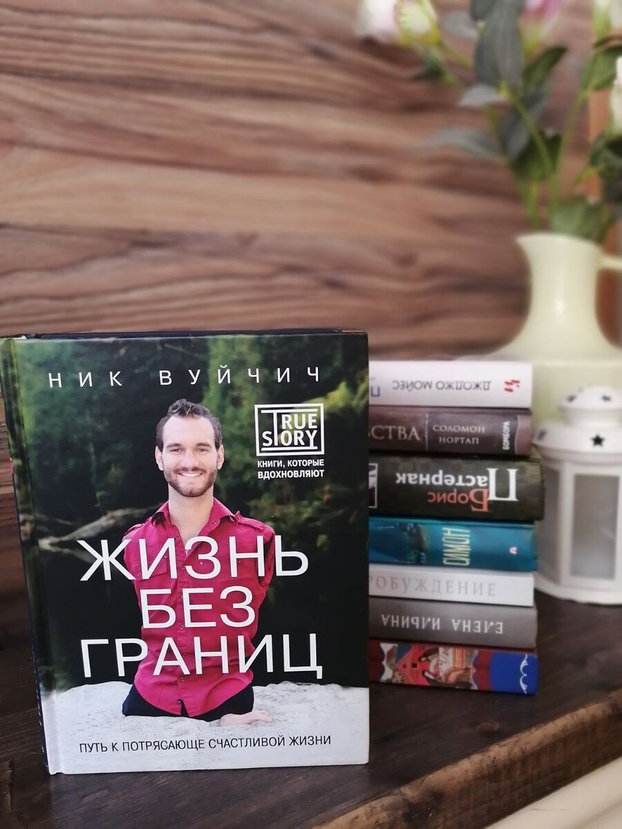 "Жизнь без границ. Путь к потрясающе счастливой жизни." Пожалуй нет человека, который хотя бы вскользь слышал о Нике Вуйчиче. Он родился без рук и ног, но он вполне независим и живёт полноценной и активной жизнью. На мой взгляд, преодолениие жизеных обстоятельств, победа над физическим несовершенством и реализация своих способностей во благо других людей — это настоящий образец силы человеческого духа. В своей книге Ник рассказывает о своих физических проблемах и переживаниях, о том, как ему было нелегко смириться со своим состоянием, а также сформулировал правила жизни, которые помогли ему научится видеть в своих проблемах не препятствие, а новые возможности и всегда добиваться поставленной цели. "Ваша жизнь может быть трудной. У вас могут быть проблемы со здоровьем, с деньгами, с личными отношениями. Но если вы видите смысл жизни, верите в будущее и не сдаетесь, вам удастся преодолеть любые препятствия". Очень рекомендую эту вдохновляющую историю тем, кто отчаялся, тем, кто не