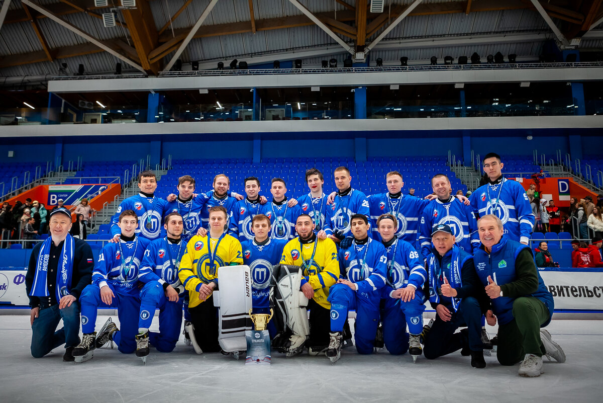 «Наша команда сегодня выступала, как основатель Ассоциации «Студенческая спортивная лига хоккея с мячом». Всем успехов, с праздником русского хоккея».