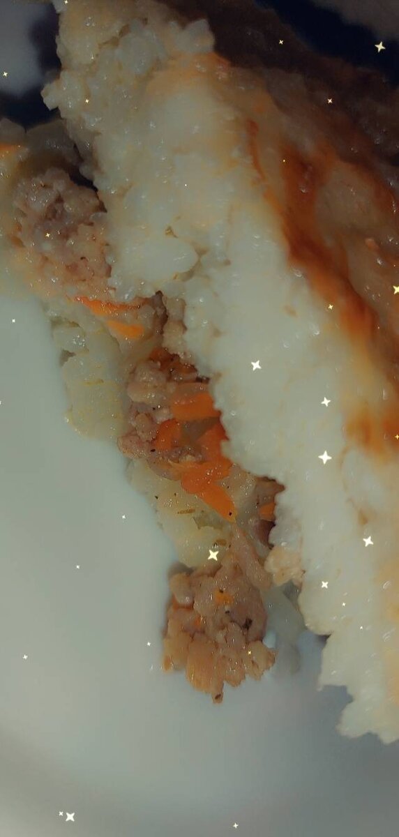 #готовимвместе Одна из любимых запеканок.. Вкусно и просто. Ингредиенты: риса круглозерного, фарша (у меня свинина + курица), Морковь, лук, Соль, специи, Масло подсолнечное, яйца, Сметана или майонез для смазывания, Твердый сыр Способ приготовления: Отварить рис до готовности в подсоленной воде. Добавляю немножко воды, в конце варки, чтоб рис не был сухим. Но консистенция должна быть как у каши. Фарш обжарить на подсолнечном масле, с добавлением лука, моркови, соли и специй. В остывший рис добавить 2 яйца и хорошо перемешать. Собираем запеканку.. в смазанную форму, выкладываем половину рисовой части, хорошо разравниваем. Затем мясную начинку, тоже хорошо разровнять. Накрыть второй частью риса, разровнять, смазать сметаной или майонезом, посыпать твердым сыром натертым на терке. И поставить в духовку запекаться. Время зависит от вашей духовки. До подрумянивания. Вкусно как и в горячем, так и в остывшем виде. Выглядит красиво, когда чуть остынет..