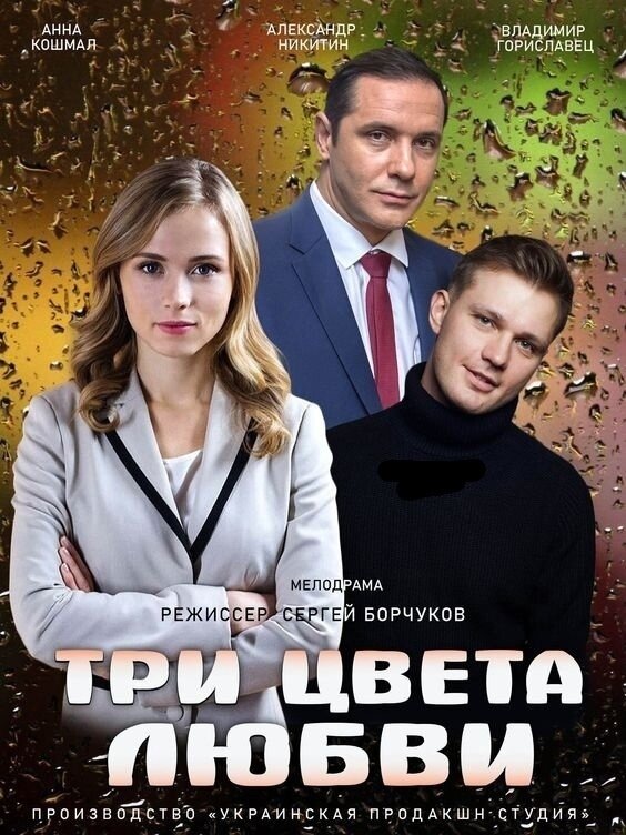 ИНФОРМАЦИЯ О ФИЛЬМЕ: Название :ТРИ ЦВЕТА ЛЮБВИ (2021) Режиссер Сергей Борчуков Сценарист Елена Зуева Оператор Александр Клименко (II) Композитор Владлен Пупков Художник Татьяна Полевик Продюсеры Ирина Заря (ген.), Ирина Чемерис (иcп.) Кастинг-директор Ирина Султанова Ассистент по актерам Олеся Безручко Актеры Анна Кошмал, Александр Никитин, Владимир Гориславец, Ирина Гришак, Александр Ганноченко, Артур Логай, Светлана Зельбет, Олеся Островская, Кира Подольская Страна Украина Производство «Украинская Продакшн Студия» Премьера 15 мая 2021 (ТРК Украина) Cерий 4 Жанр мелодрама Описание : Эля вышла замуж за человека, которого уважала, даже боготворила. Но не любила. Когда ее настигла любовь к другому, Эля не смогла устоять. И ушла от мужа, разрушив его бизнес, всю его жизнь. Ей предстоит осознать свой поступок и ценой огромных усилий, по крупицам, восстановить все, что рухнуло из-за нее. Только тогда судьба наградит ее новой любовью и радостью. Источник:kino-teatr. Ru