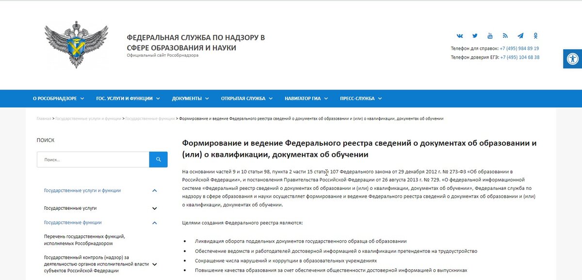 1. Заходите на сайт https://obrnadzor.gov.ru/gosudarstvennye-uslugi-i-funkczii/7701537808-gosfunction/formirovanie-i-vedenie-federalnogo-reestra-svedenij-o-dokumentah-ob-obrazovanii-i-ili-o-kvalifikaczii-dokumentah-ob-obuchenii/. Пролистываете страницу вниз до вкладки "Сервис поиска сведений о документах об образ
