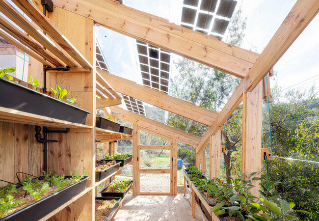 Студенты каталонского Института передовой архитектуры разработали прототип теплицы, которая способна работать на солнечной энергии. Площадь данной теплицы составляет 12 м. кв., для ее строительства использовалась сосновая древесина. Сооружение расположено в Барселоне, на территории природного парка Сьерра-де-Кольсерола. У теплицы наклонная стеклянная крыша, на которой установлены солнечные панели. Внутри работают ультрафиолетовые и светодиодные лампы, благодаря которым растения продолжают расти в ночное время. Теплица также оборудована системами естественной вентиляции и орошения. В качестве субстрата используются опилки из срубленных деревьев, что ускоряет процесс роста овощей. Для работы теплицы достаточно половины энергии, производимой установленными на ней солнечными панелями. Остаток используется для работы лабораторных объектов. По словам разработчиков, на крыше теплицы можно установить еще большее число панелей, что позволит увеличить количество остаточной энергии на 25%. Стоит