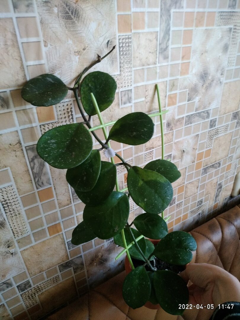 Разрешите представить свою хойю обовату. У нее толстые и мясистые листья, как у суккулентов. Ее ствол практически сложно согнуть, но можно. Многие люди данный вид хойи выращивают на округлых опорах и это смотрится довольно красиво и гармонично. Я же свою решила пока оставить на лесенке, прищелкнув заколочкой, так как ее сложно удержать, она падает под тяжестью своего веса. Посажена она у меня в литровый горшок, но судя по корням скоро придется ее переваливать в немного большую емкость. Слишком большой горшок брать нельзя, так как хойи любят расти в более тесных емкостях. Землю для хойи буду брать "для суккулентов", но также немного добавлю универсальной, вермикулита, древесного угля. В качестве дренажа у всех растений использую древесный уголь уже в течение года. Керамзитом не пользуюсь, так как его желательно надо чаще менять. Обовата стоит на западном подоконнике и хорошо себя там чувствует. На солнышке у нее появляется красивый розовый сплеш. Если будет стоять в тени, то будут обыч