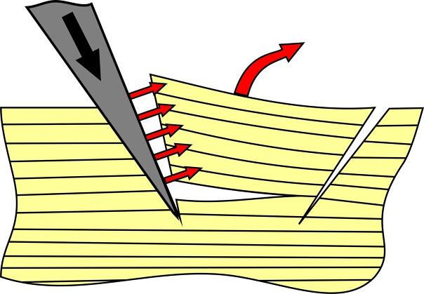 Раз (замах), два (удар с права), три (рукоятку вбок), четыре (рукоятку в верх). Ура, топор свободен можно делать следующий удар! Чтобы избежать залипания, необходимо с каждым ударом вырубать щепу. Конечно, этого можно достичь за счет техники рубки, правильно подобранной под топор. Но в первую очередь это достигается за счет клина лезвия топора. Плоское лезвие будет залипать в древесине. Лезвие клиновидной формы, врубаясь, расщепляет древесину по волокнам и выкалывает щепу, образуя окно для рубки. Тем самым топор освобождает себе место для дальнейшего продвижения.