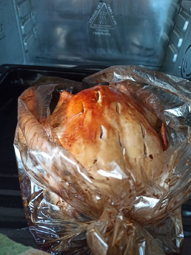 Ингредиенты: Курица, Соевый соус, Паприка, Перец, Соль, Майонез, Чеснок Способ приготовления: Как запечь курицу в рукаве: Смешиваем в отдельной емкости паприку, соевый соус, красный молотый перец и соль. Тщательно перемешиваем. Полученной смесью смазываем курицу со всех сторон. Майонезом я промазываю курицу внутри, кладу туда чеснок. Оставляем мариноваться на 30-40 мин. Делаю прорези в курице ножом. Отправляем курицу в рукав и запекаем 1,5 часа при температуре 200 градусов. Даем курице в рукаве немного остыть и аккуратно достаем из рукава, не обожгитесь об выделившийся из курицы сок и жир.