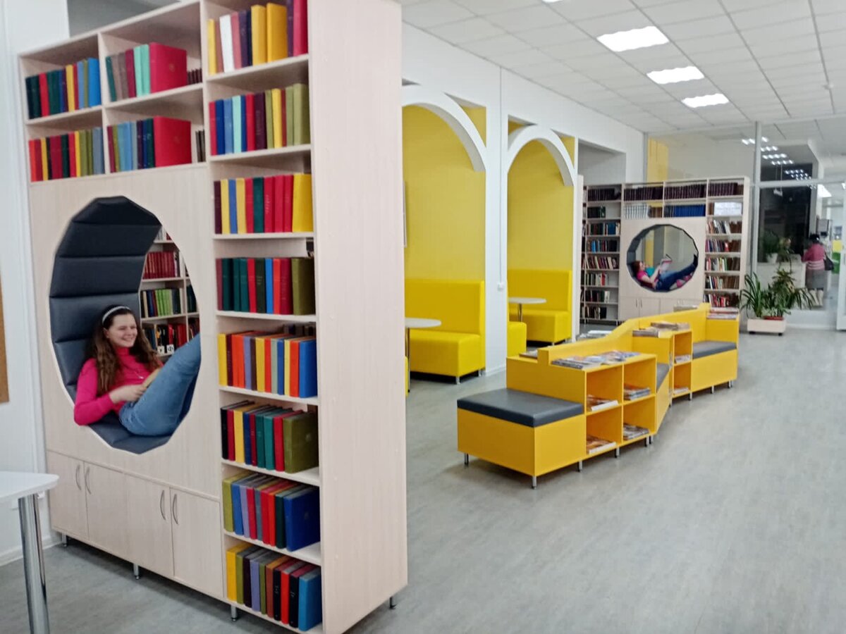 В конце 2021 года в Камышине состоялось торжественное открытие модельной библиотеки. Благодаря этому событию в библиотеке им. М.А. Шолохова появилось детское отделение. Теперь все филиалы ЦГБС обслуживают и самых маленьких читателей. Хотим познакомить вас с работой детского отделения модельной библиотеки и рассказать, на каких книгах растёт юное поколение камышан. ♦ Современно и красиво В первую очередь нужно сказать, что детское отделение в Центральной библиотеке кардинально отличается по оформлению от того, какое мы привыкли видеть в таких учреждениях. Вместо огромных кафедр, столов и стульев тёмного цвета здесь кругом яркая многофункциональная мебель. Пространство разделено на несколько зон. В одной из них самые маленькие посетители могут поиграть, порисовать на маркерной доске или создать картину из песка. В современном мире никуда не деться от компьютерных технологий. В обновлённой библиотеке они тоже имеются. У камышинских ребятишек есть бесплатный доступ ко многим электронны