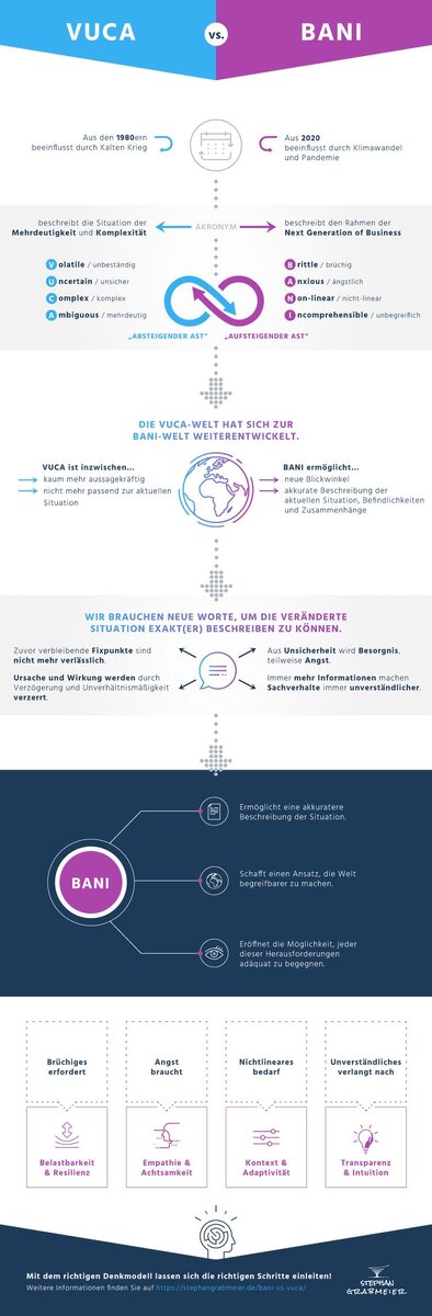 Наткнулся на интересную статью про то, что произошло с нашим миром, решил поделится. Мы перешли из VUCA- мира и теперь живём в BANI-мире: Brittle (хрупкий) Сегодня любая крупная компания с вековой историей может быстро развалиться в одночасье (пандемия - ресторанный бизнес) Anxious (тревожный) Самые распространенные симптомы и заболевания 21 века. Потому что нет ничего надежного и никто ни от чего не защищён, стали сильно зависимыми от информации. Non-linear (нелинейный) Сегодня произошло разъединение между причиной и следствием. Получается так, что результаты предпринятых каких-либо действий становятся несбалансированным: небольшие решения могут привести к глобальным последствиям, а огромные усилия могут привести к 0 результату. Incomprehensible (непостижимый) Мы становимся свидетелями событий и решений, которые кажутся нам нелогичными или бессмысленными . Будь то потому, что истоки слишком давние, будь то потому, что они слишком невыразимы или просто слишком абсурд