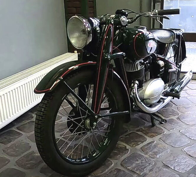 Практически все любители ижевских мотоциклов знают легендарный ИЖ-49. Мотоцикл который, по сути, стал первым массовым транспортным средством СССР. Объемы выпуска превышали сотни тысяч штук в год. Конвейер ижевского мотоциклетного завода работал на полную мощность, выпуская довольно надежный и качественный мотоцикл. Но сегодня мы поговорим не о нем, а о его предшественнике. Именно ИЖ-350 и стал отцом 49-ой модели. По сути, многие идеи заложенные в ИЖ-49, были обкатаны именно на 350-ой модели. Первые мотоциклы увидели свет уже в 1946 году. По сути, ИЖ-350 был копией немецкого DKW NZ-350. Почему именно ДКВ? Все очень просто. После войны в Ижевск из Германии вывезли оборудование и техническую документацию именно на этот мотоцикл. Кроме прочего, на советский завод приехала группа немецких специалистов для наладки оборудования. В итоге получился простой и надежный мотоцикл, который выпускали вплоть до появления ИЖ-49. Основное отличие между моделями 350 и 49, это конструкция передней вилки.