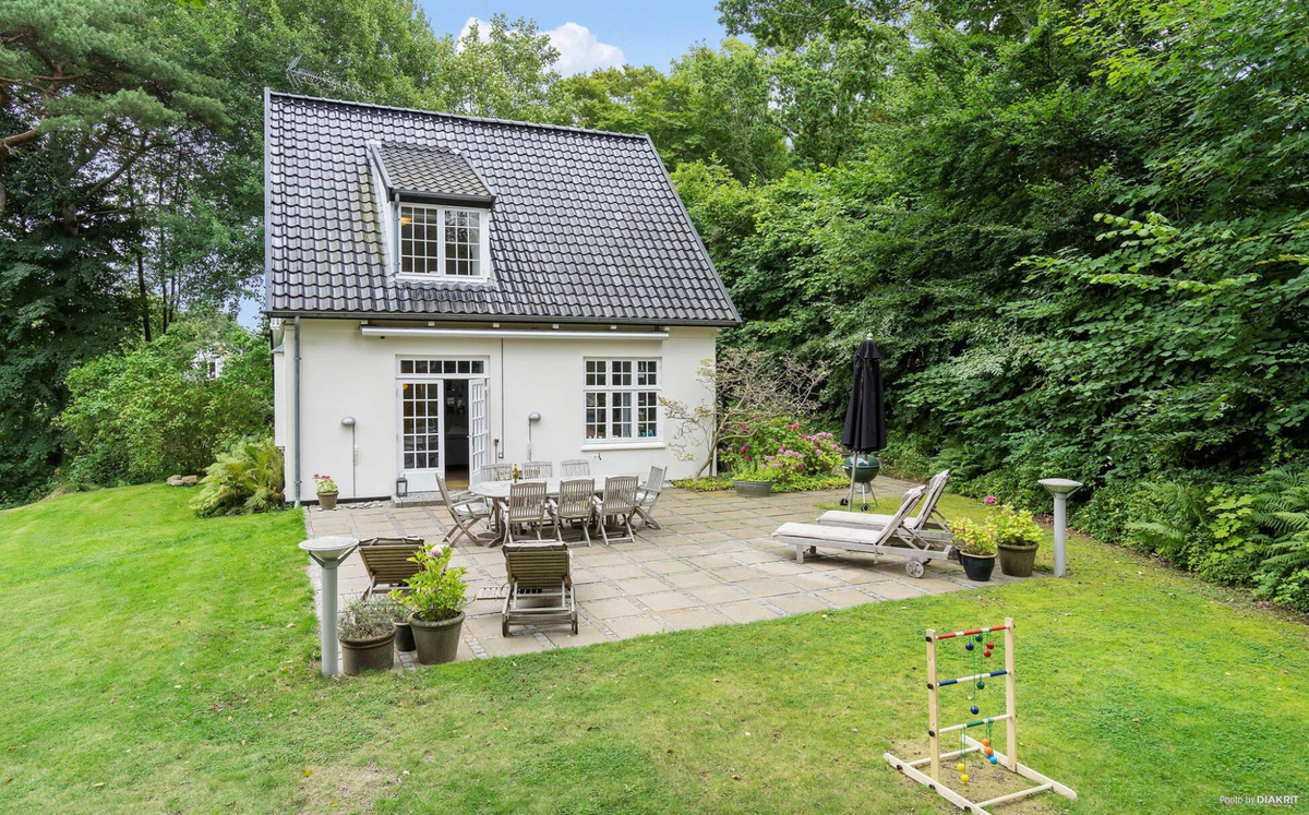 Дачный участок с огородом сегодня не самое распространенное явление. Ведь многие жители мегаполиса едут за город не ради изнурительной работы в саду, а ради смены обстановки и отдыха на лоне природы. Правда, на этот счет у каждого имеются свои представления. Новый владелец этого загородного дома распорядился большой площадью участка по-своему и воплотил на нем свое представление об идеальном отдыхе вдали от городского шума-гама. Он не только отремонтировал дом, построенный несколько десятилетий назад, обновил интерьер, но и создал вокруг него особую атмосферу — своего рода частный загородный клуб, в котором можно отлично провести выходные с семьей или в компании друзей. Рядом с коттеджем обустроили настоящий теннисный корт, разбили просторный газон. Для любителей спокойного отдыха и неспешных бесед есть открытая терраса с шезлонгами и длинным обеденным столом, костровая зона, а также гамак, подвешенный в тени деревьев. Фасад двухэтажного кирпичного дома отделан белоснежной штукатуркой,