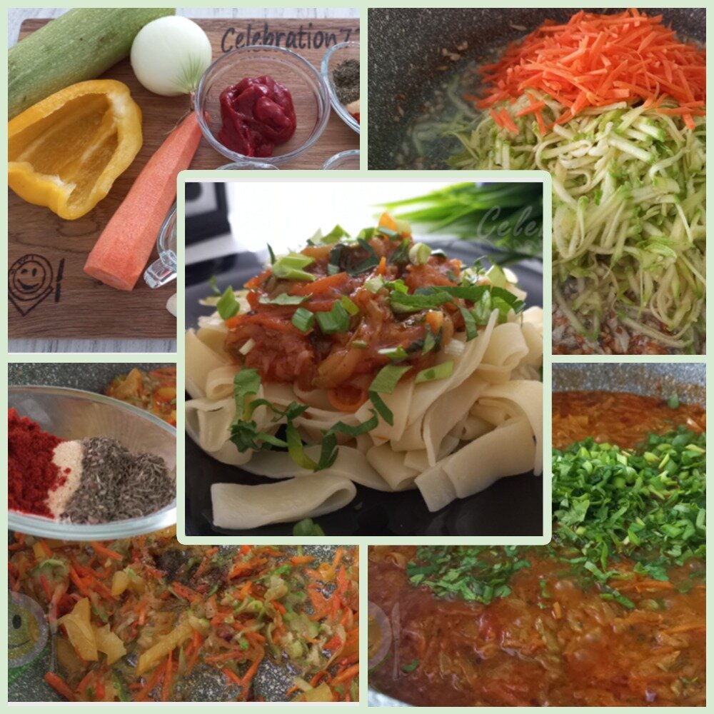 Овощной "Болоньезе" идеально подойдет тем кто поститься, а еще тем, кто из своих соображений решил отказаться от мяса. Ведь в рецепте составляющие только из овощей. Ингредиенты: Кабачок (средний)...................1 шт Морковь (средняя).................. 1 шт Лук репчатый.............................1 шт Перец болгарский.................0,5 шт Чеснок .................................1 зубчик Томатная паста...................1,5 ст. л Соль............................................1 ч. л Паприка (сушёная).................1 ч. л Сушёный чеснок..................0,5 ч. л Базилик (сушёный).............0,5 ч. л Тимьян (сушёный)...............0,5 ч. л Перец черный молотый.....1/3 ч.л Лук зелёный.......................по вкусу Петрушка........................... по вкусу Вода........................................300 мл Масло растительное для жарки Приготовление. Блюдо готовится довольно быстро, на сильном огне, поэтому сначала подготовим все овощи. Репчатый лук очищаем и шинкуем мелки