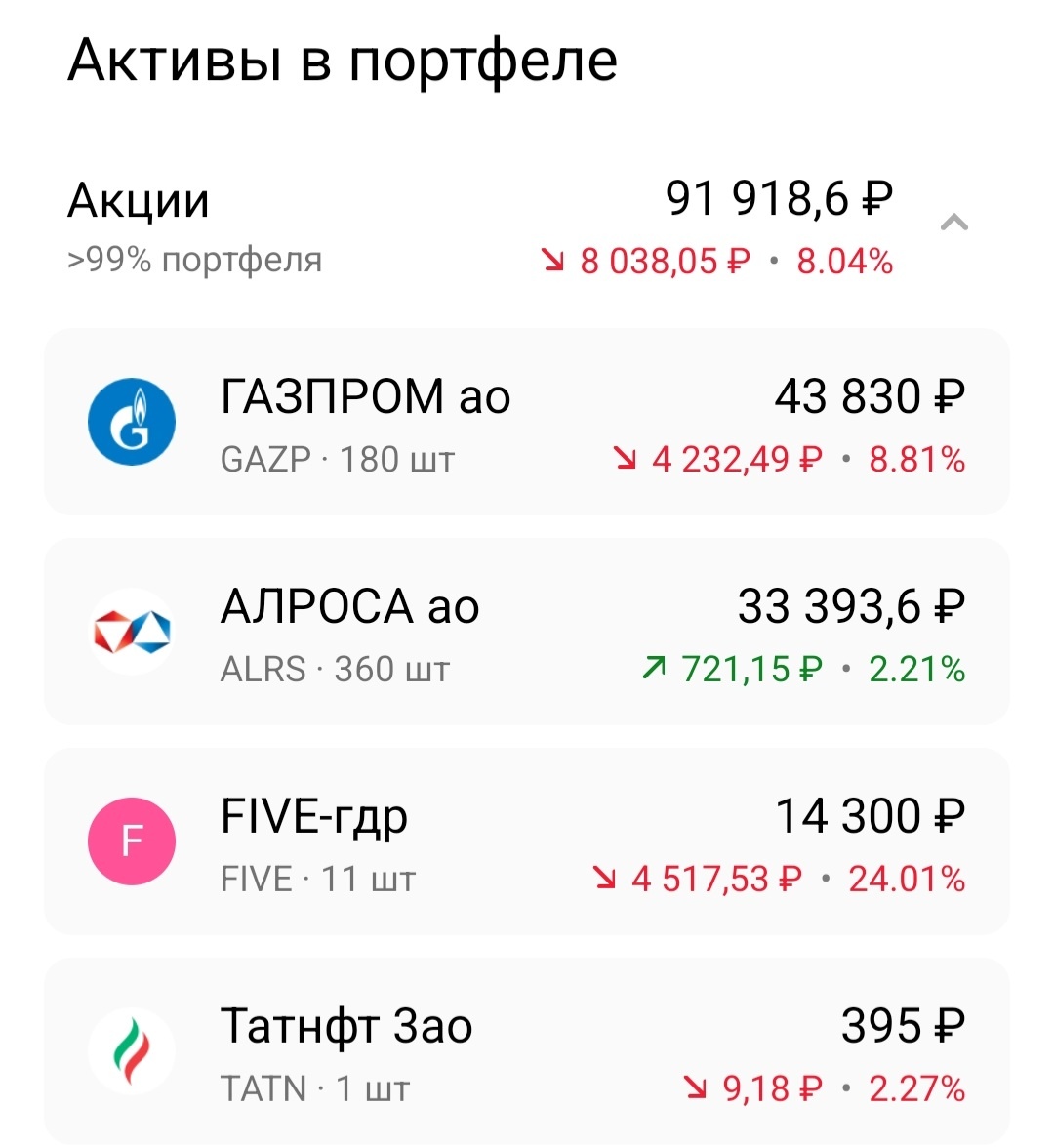 Всех приветствую на канале! Долгое время переваривал сложившуюся ситуацию на рынке, в экономике. К тому же закрытая биржа предоставила такую возможность. И сегодня хочу рассказать про то, что успел натворить до 24.02.22г. В 20-х числах февраля рынок пробил дно, и происходило это заманчиво, то отрастет, то опять упадет. И тем самым наталкивал на мысль, а может завтра что-то изменится и все улетит вверх. И я решился на спекуляцию, купить и продать, заработав при этом процентов 20. В голове даже была идея сыграть на всю накопительную подушку, которую так кропотливо создавал. Хорошо, что внутренняя неуверенность помешала мне сделать такой шаг, но 100 тысяч рублей не уберегла, и жадность ей в этом помогла. А мог бы тысяч 5 за сутки поднять и одуматься, продав все спекулятивные бумаги. Но такие действия не последовали, ну а дальше от меня уже ничего не зависело. Было страшно смотреть, когда 100 тысяч превращались в 60, сразу вспоминается сказка "Золушка". А потом и вовсе все двери рынка