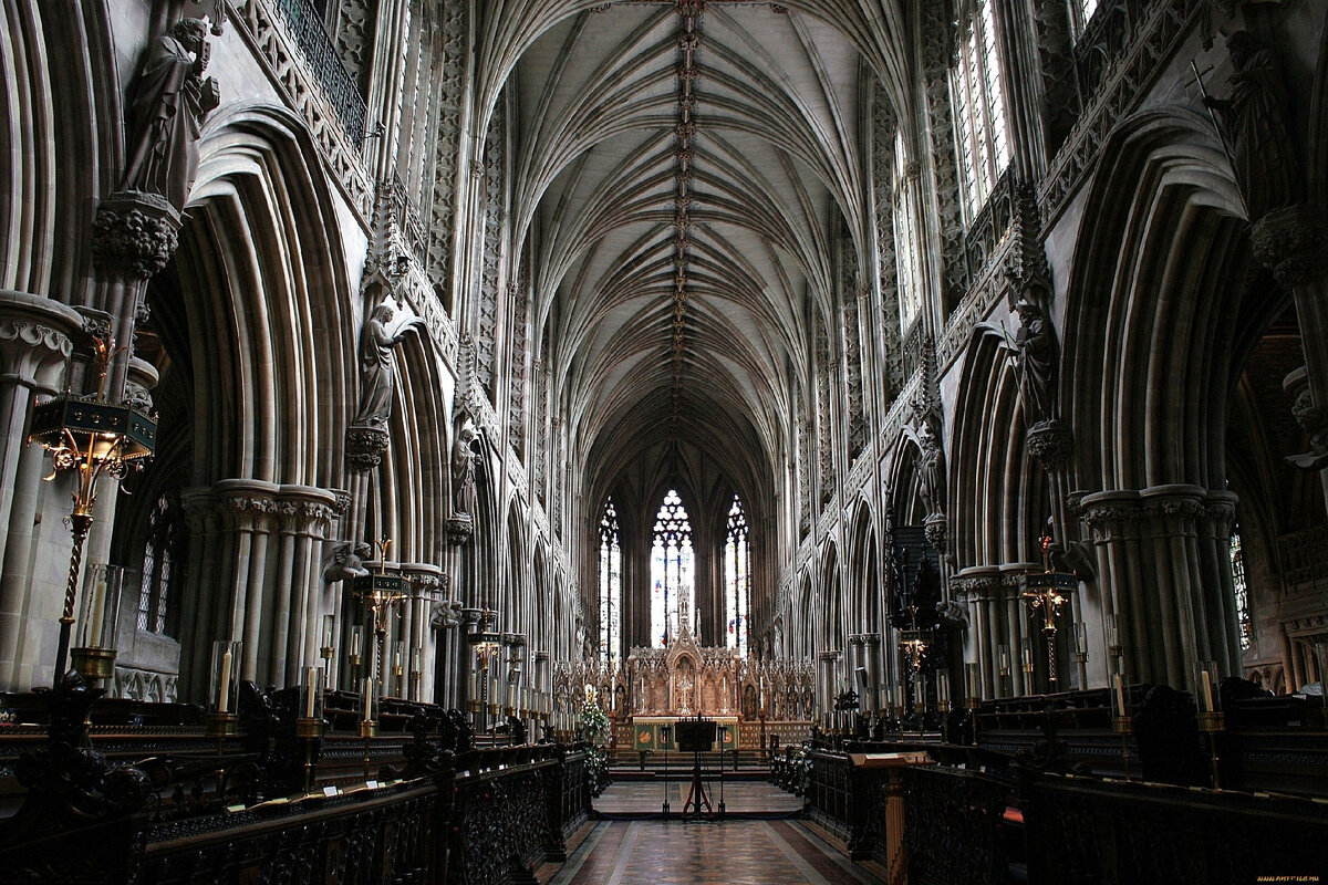 По-прежнему единственной крупной задачей архитекторов остается постройка церквей, но как меняется по сравнению с минувшими столетиями их форма! Громоздкие, мрачные, похожие на крепости романские церкви уступают место динамичным, ярким, бесконечно разнообразным строениям готики. Стены перестают быть конструктивным элементом, а потому становятся более легкими; характерными элементами формы являются высокие башни, стройные колонны, сложные формы сводов, ажурные орнаменты, окна в форме розы и стрельчатые своды. Стрельчатый свод устремлен ввысь наподобие копья, в его форме ощущается восточное влияние. Рис. 82-85.