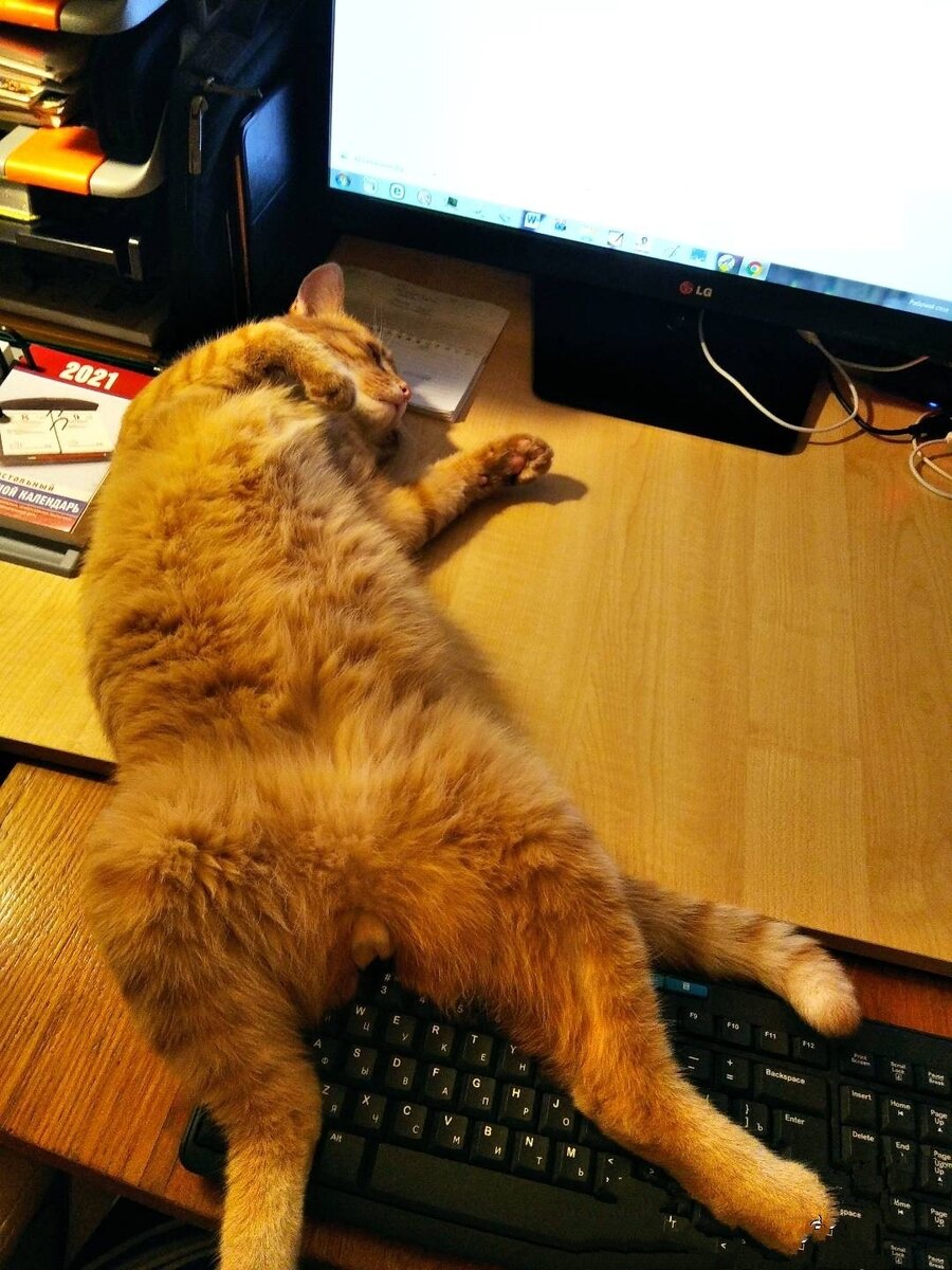 О чем писать, когда не о чем писать... Работаю над книгой. Продираюсь сквозь сюжет, пытаясь добраться хотя бы до островка посередине. Дух перевести, потери осмыслить, приобретения подсчитать и учету подвергнуть. Кто мне мешает в этом праведном и нелегком деле? Ну конечно же, Федя! Ну что за дурная привычка, плюхаться прямо на клавиатуру прямо посреди процесса. Только начал буковки формировать, фразочку оформлять, как Федя тут как тут. Плюуух! И фсе! Я тоже плюх... Дык это еще не все. Федя, он же активный! Поэтому просто так себе лежать, это не про него. Федя тянется своей лапой ко всему, до чего дотянуться получилось. В частности, до ручки, которая у меня в руках. Ручка для каких целей? Праавильно! Для умных мыслей. Бывает, мысль вперед кнопочек убегает. Не поспеваю я за ней. Тогда ручка спасает. По старинке быстрее выходит. Говорят, традиции надо чтить и поддержи