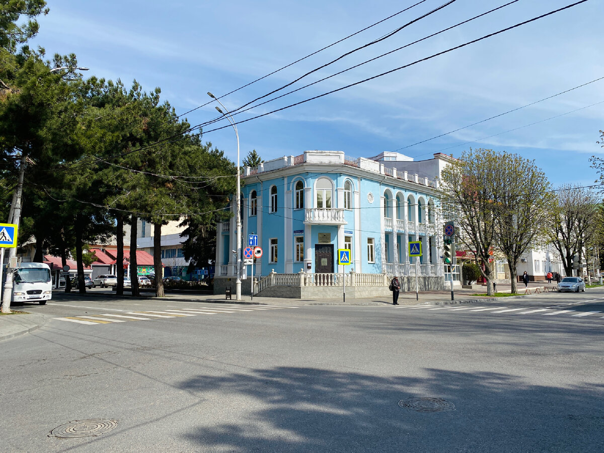День выдался ясный, но ветреный, в воздухе +12, а ведь еще пару дней назад было +20, так с нами играет погода. Хотя это вполне привычно, каждый год весна именно так и раскачивается, то тепло, то холодно. Синоптики ещё пару дней обещают солнце, а потом снова на несколько дней придут дожди. В общем, ловим удачный момент и вперед гулять по солнечной Анапе. Мы с вами на пересечении улиц Крымская и Краснодарская. Будем двигаться к городской администрации и поющим фонтанам. Кстати, вы знаете, как в Анапе принято у местных переходить перекрестки? Кто был в Анапе, точно видел. А в этом изящном, небесного цвета здании находится анапская прокуратура. Здание первой половины 20-го столетия, в годы ВОВ пострадало, но устояло, сейчас в обновленном виде выглядит замечательно. Мы вышли к городской администрации. Бывает же так, стоило мне сегодня разместить снятое пару дней назад видео с фонтанами, и именно сегодня они перестали работать. Скорее всего выплыли какие-то неисправности, и их на время пришл