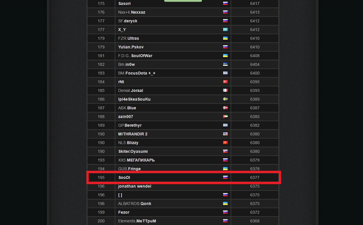 Уже после, когда в Доте появился матчмейкинг и рейтинг, я откалибровался на 4100. Тогда я играл на всем: и на керри, и в мид ходил, и на саппортах, да даже в лес ходил на Фурионе с Мидасом. Мой рейтинг колебался в районе 4 тысяч, но ниже 4000 не опускался никогда. У большинства профессионалов ММР был в районе 5400−5500. Точно помню, что у Хвоста в первую неделю было 5100 ММР, когда у меня было 4100.