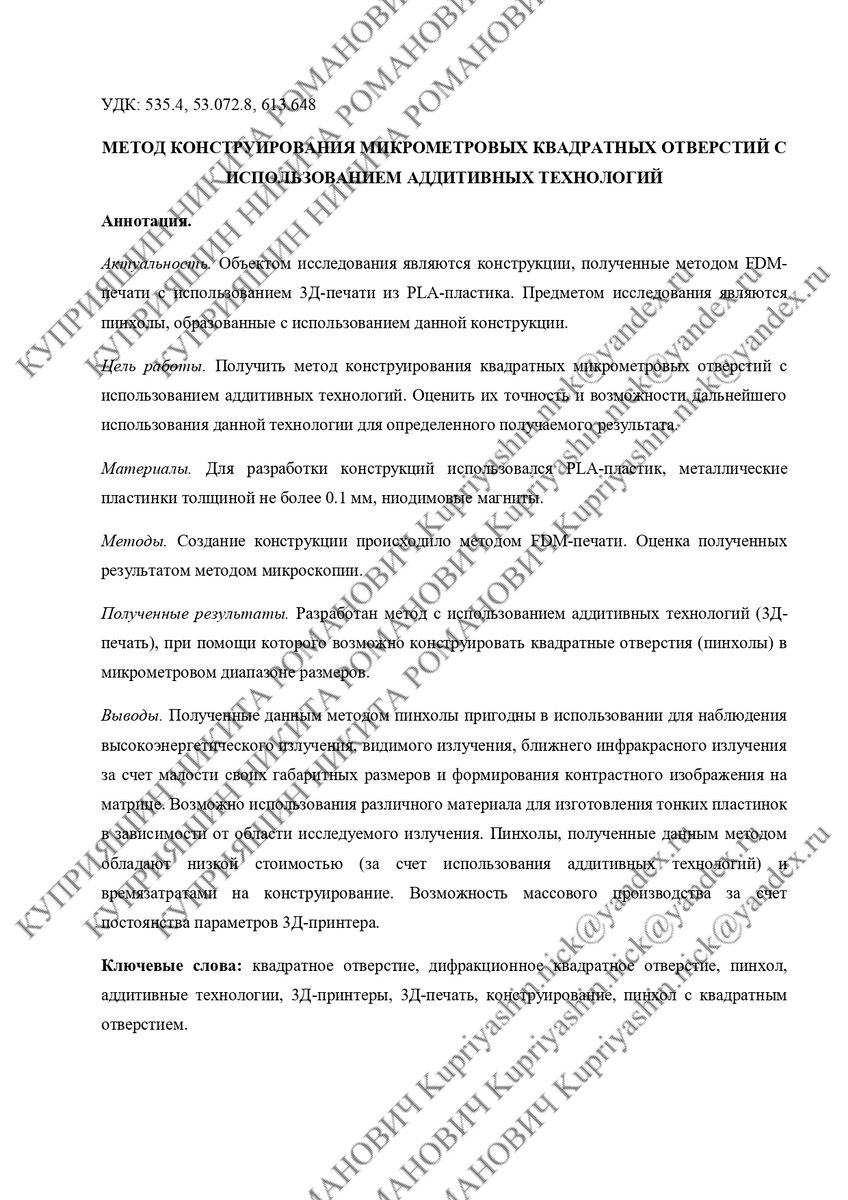 МЕТОД КОНСТРУИРОВАНИЯ МИКРОМЕТРОВЫХ КВАДРАТНЫХ ОТВЕРСТИЙ С ИСПОЛЬЗОВАНИЕМ АДДИТИВНЫХ ТЕХНОЛОГИЙ