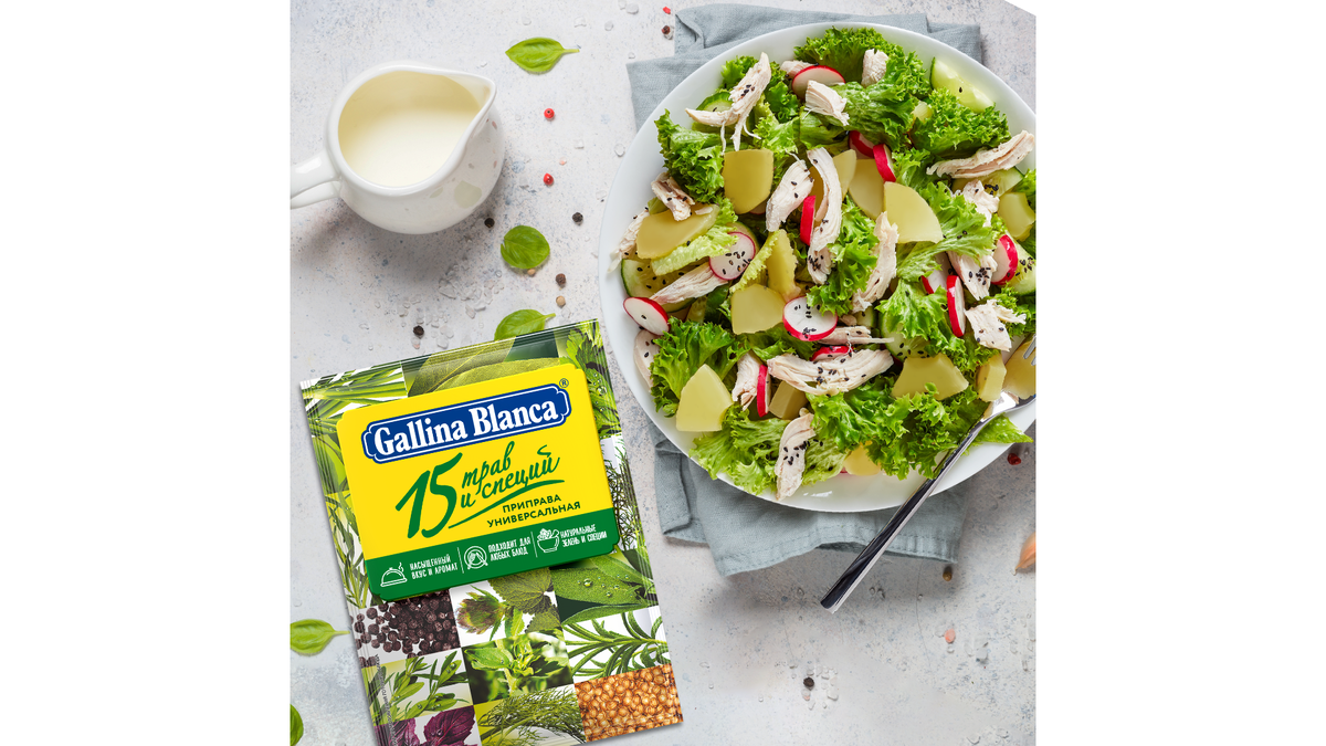 Люди делятся на тех, кто любит йогурт. И тех, кто еще не пробовал из него заправку для салата со специями Gallina Blanca! Для салата понадобятся: Как приготовить: Салат готов. Наслаждайтесь! Больше рецептов на gallinablanca.ru