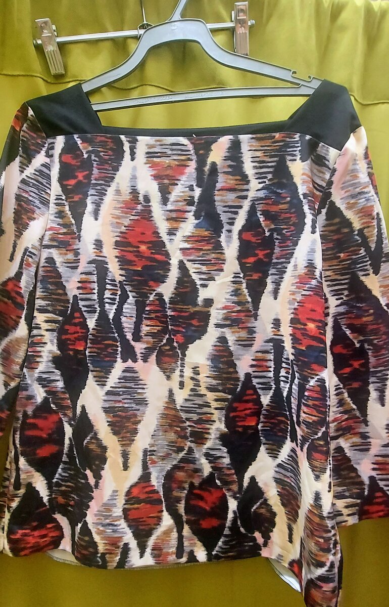 Привет) Сегодня снова покажу, что интересного нашла на скидке в Другой одежде! Это Секонд Хенд Ниждено Тагила, один из лучших магазинов города!🥳 Прошу учесть, что любая вещь,продавалась за 50 рублей❗ Помимо того, что я сама рассказываю об ассортименте магазинов вторые руки, я ещё и с удовольствие читаю других авторов. Недавно открыла еще одну прекрасную девушку. Ссылку на ее канал дам в конце статьи, а сейчас смотрим, что нашлось в нашем магазине! Блуза с оригинальным принтом. Контрастная кокетка, черного цвета. Укороченный рукав. И бренд дорогой, Jerard Darel...Но это полиэстер( Были у меня сомнения: Хочу, не хочу!Нужна, не нужна! Таких кофточек у меня несчетное колличество! Куда еще одну!? Эта мне напомнила восточные узоры, а таких меня нет.. Но я все таки совладала со своими желаниями, и оставила ее в магазине. Неприглядная, льняная юбка-годе. Мятая, побитая жизнью.. Хотела сказать молью, да вовремя остановилась.. Моль лён не ест!Или все таки с голодухи может)) Тоже ведь натурпр