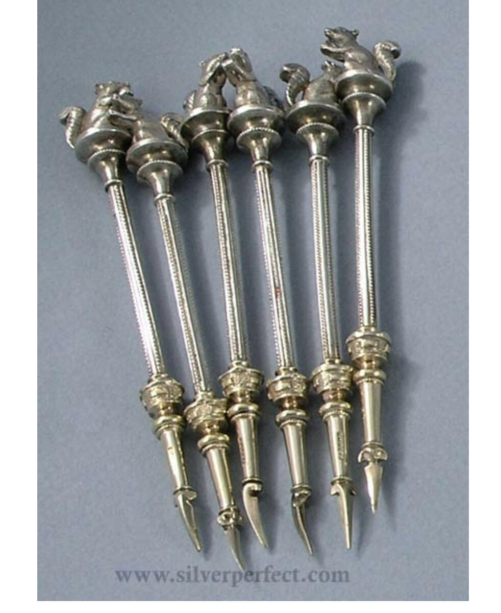 Одним из совершенно замечательных приборов, не столь широко известных широкому потребителю, а от того производящих прекрасное впечатление на желающих приобщиться к тайным знаниям европейских сервировок, можно, без сомнения, назвать приборы для орешков. Во Франции во времена Людовика XIV хорошим тоном считалось брать орехи исключительно руками. Орешки же в период промышленного бума столовых приборов было принято подавать в конце трапезы, очень часто в комбинации с фруктами и портвейном. Собственно, об этом я и хотела рассказать в прошлую среду. Орехи к столу подавались иногда уже очищенными, скорлупки оставались в кухне. Другой вариант использования - чтобы более элегантным способом извлекать сам орех из скорлупки прямо за столом. Люди той эпохи старались никогда и ничего не трогать руками. Прибор, как вы видите, индивидуальный, продавался чаще всего в наборах, как и положено - по 6 или 12. Так же были популярны подарочные наборы, включающие в себя, например: ножницы для виноград