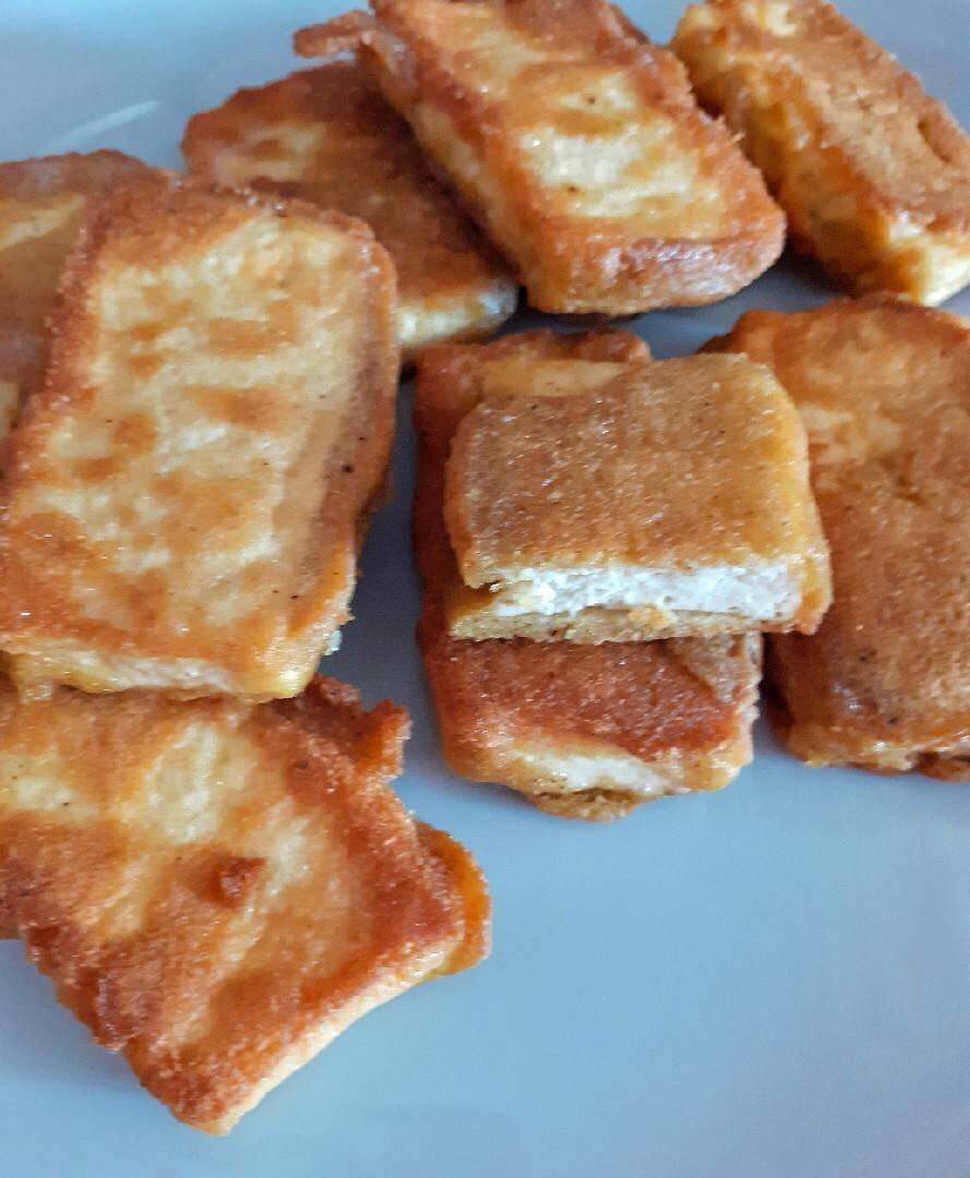 #академия #восточнаякухня #завтрак Сыр тофу с пикантной, хрустящей корочкой отлично подойдет для прекрасного начала дня. Быстро и вкусно. Ингредиенты: сыра тофу, у меня домашний, яйцо, муки, любой, соевого соуса, соль, специи, сушёный чеснок, Растительное масло для жарки сыра Способ приготовления: Подготовить все необходимое количество ингредиентов. Сыр порезать ломтиками, не сильно большими. В яйцо добавить соль, сушёный чеснок и специи, взбить венчиком. Соли необходимо всыпать столько, чтобы при добавлении соевого соуса было достаточно соленого вкуса. У меня это было примерно 2 хорошие щепотки. После этого влить соевый соус и ещё хорошо взбить венчиком. Всыпать муку. У меня была кукурузная, но можно взять любую. Главное, чтобы получилась консистенция средней жидкости и можно было обмакивать ломтики сыра. Обваливаем ломтики сыра в кляре и обжариваем на разогретой сковороде с добавлением растительного масла до румяной корочки. Обжаренные ломтики выложить на бумажное полотенце. И можно