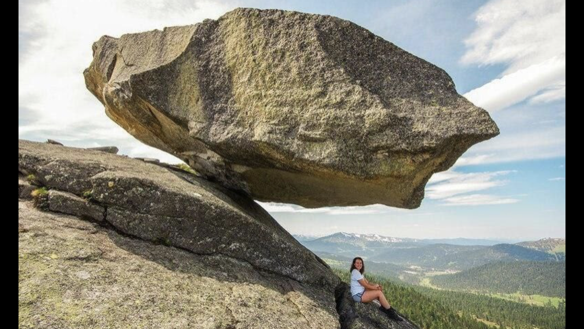 В заповедники "Ергаки" находится одно из чудес природы - каменная глыба весом около 600 тонн будто застыла на краю пропасти.